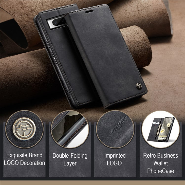 CASEME 013 Series For Google Pixel 8 Case Magnetic PU Leather Phone Cover with Stand - Black