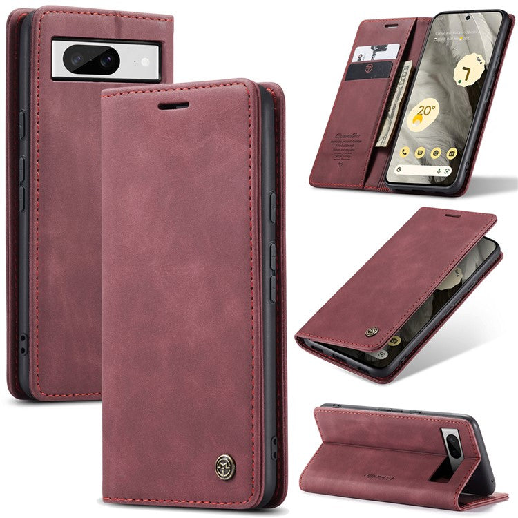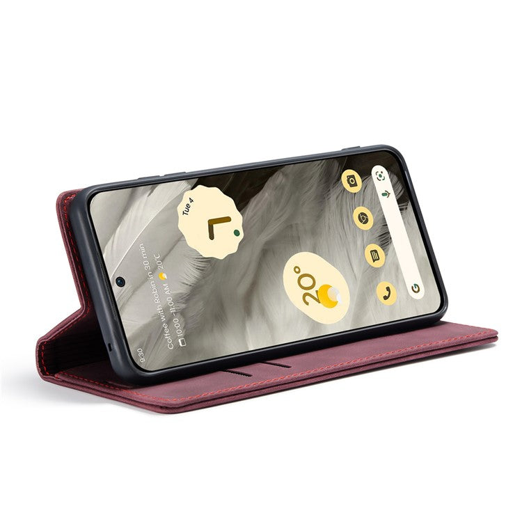 CASEME 013 Series For Google Pixel 8 Case Magnetic PU Leather Phone Cover with Stand - Red