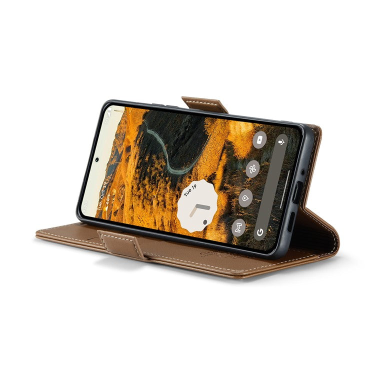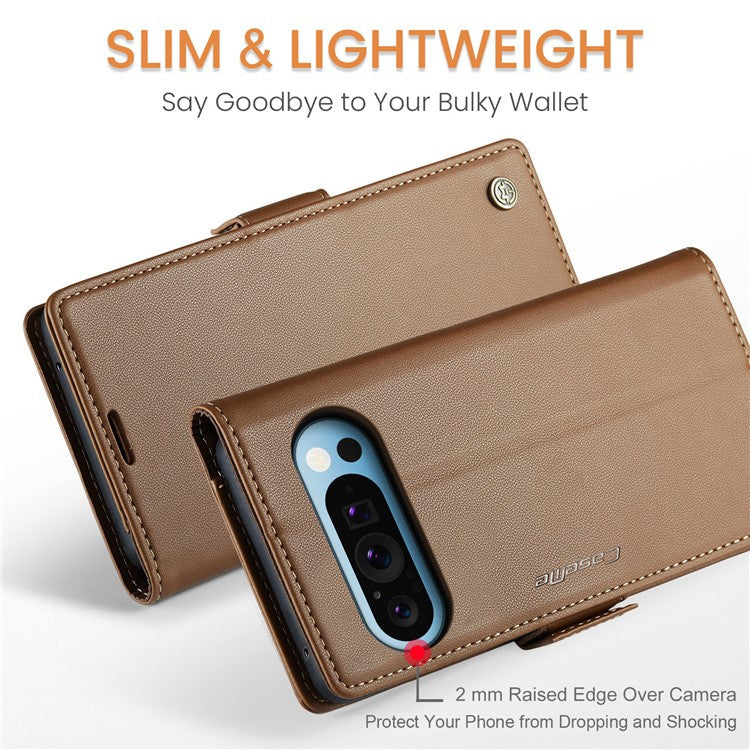 CASEME 023 Series For Google Pixel 9 Pro XL Case RFID Blocking Glossy Stand Phone Cover - Brown