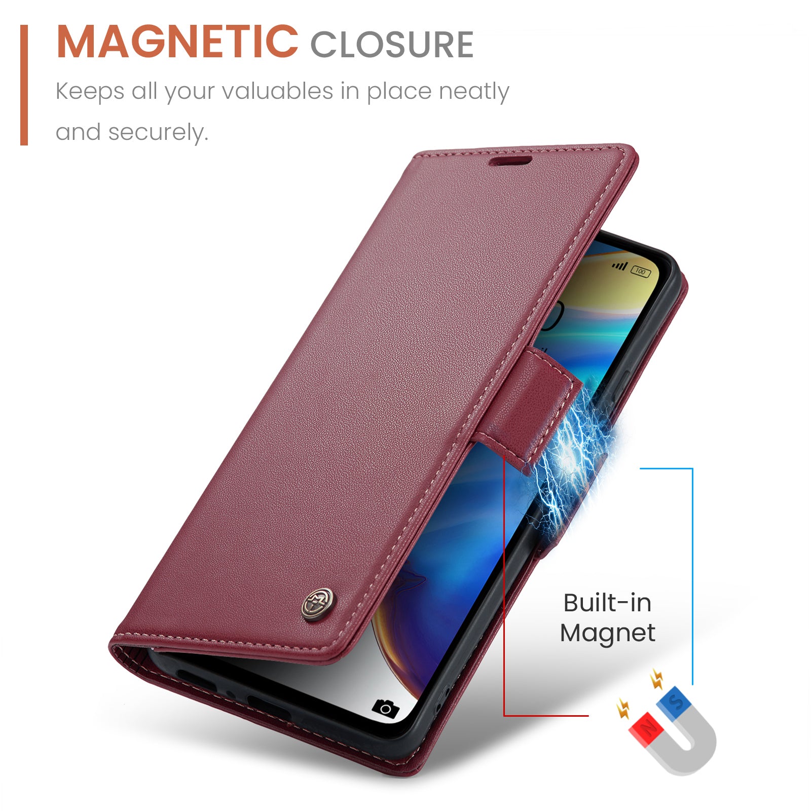 - Well-selected PU leather plus thick TPU inner case, protect your phone from outside to inside