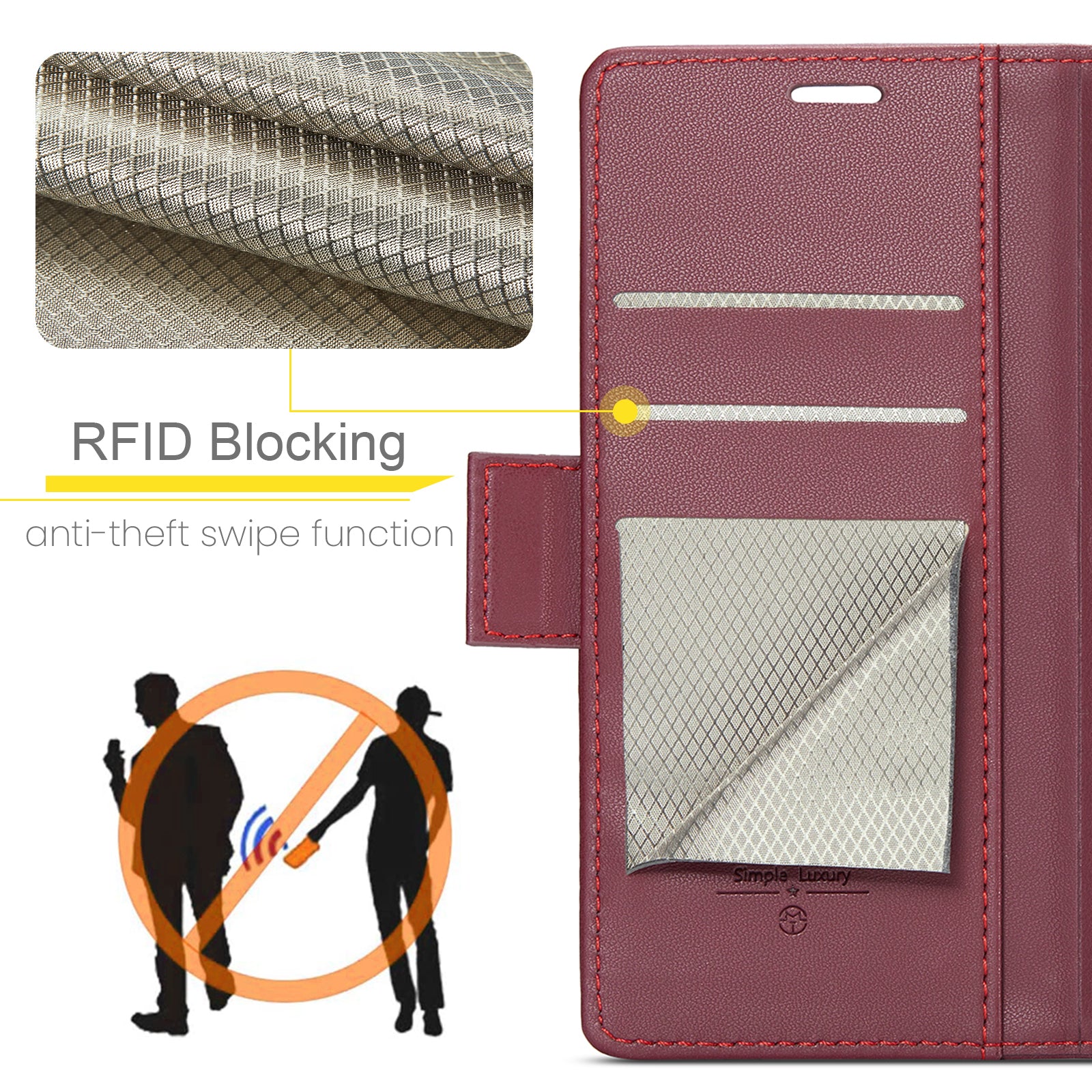 - The card slot is supported by advanced RFID blocking technology to effectively block signals and protect your personal information from theft