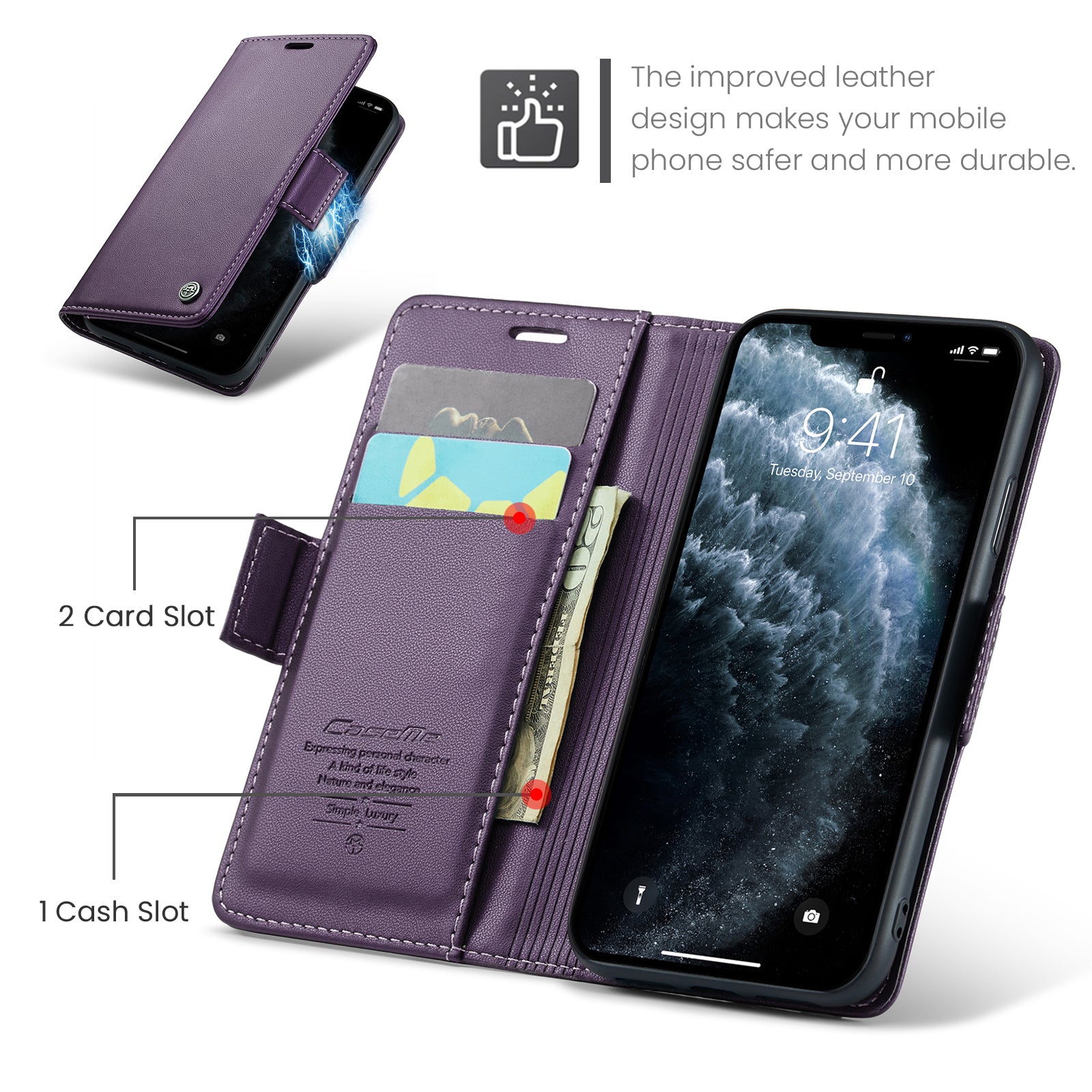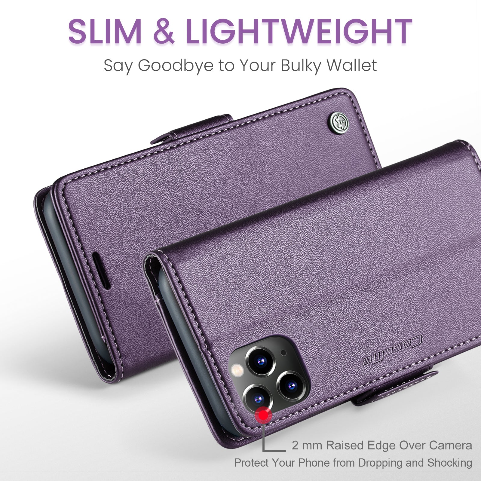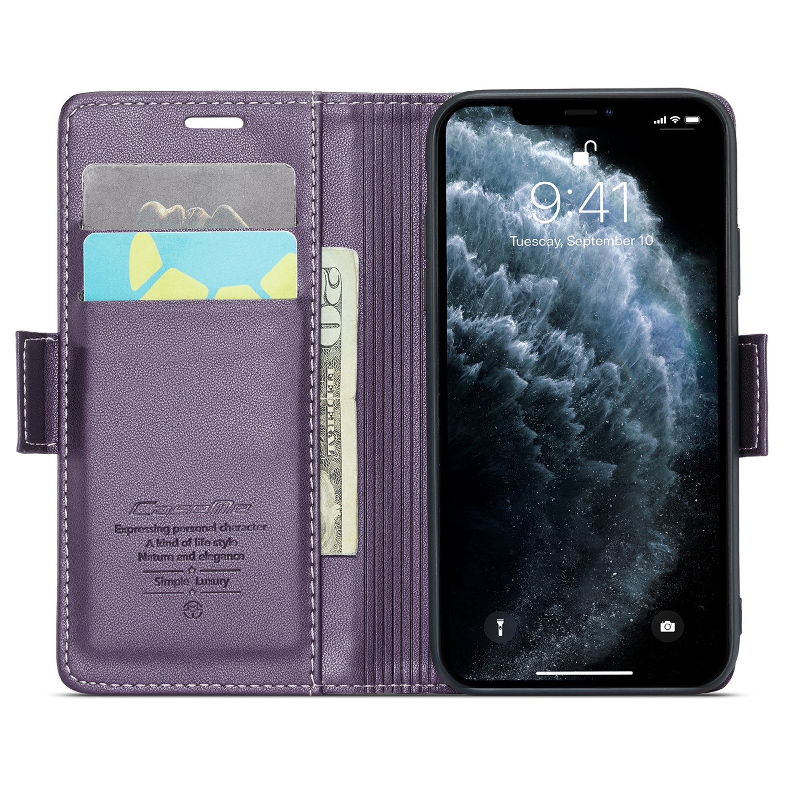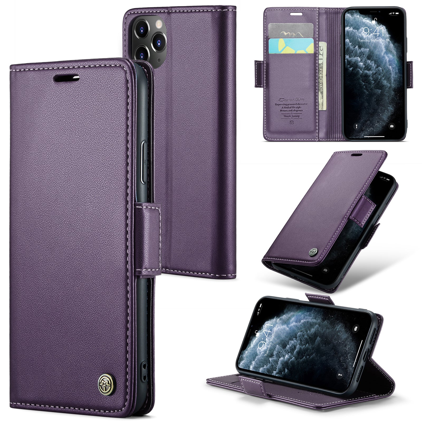 Caseme 023 Series Stand Leather Phone Case for iPhone 11 Pro , RFID Blocking Litchi Texture Wallet Cover - Purple