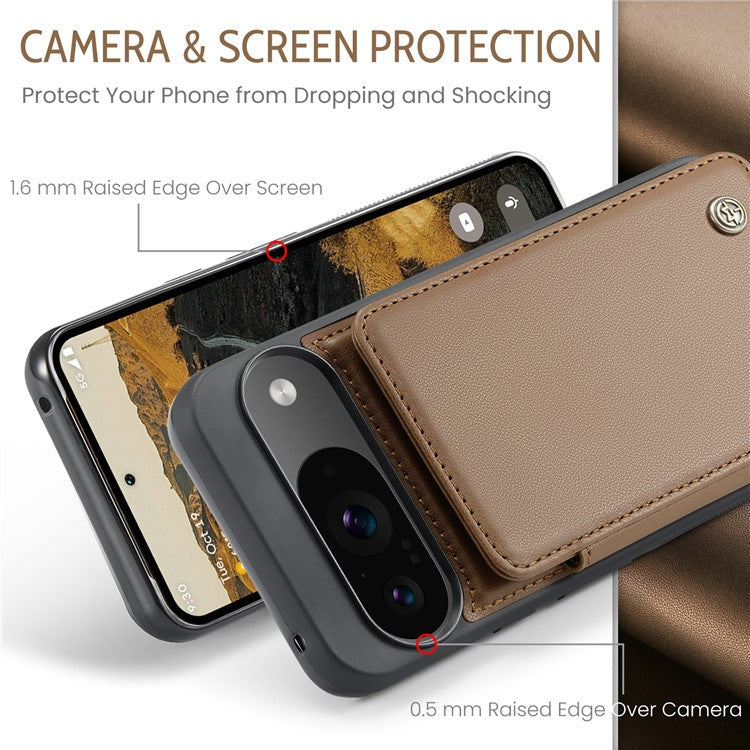 CASEME C22 Series For Google Pixel 9 / Pixel 9 Pro Case Leather+TPU Cover RFID Blocking Card Slots - Brown