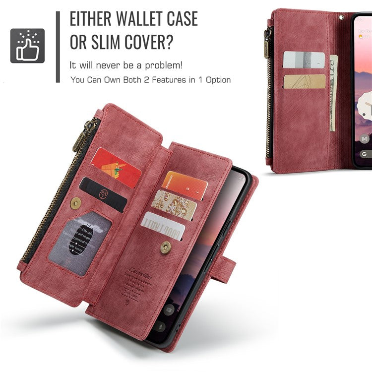 CASEME C30 Series for Google Pixel 9 Pro / Pixel 9 Case PU Leather 7 Card Slots Wallet Phone Cover - Red