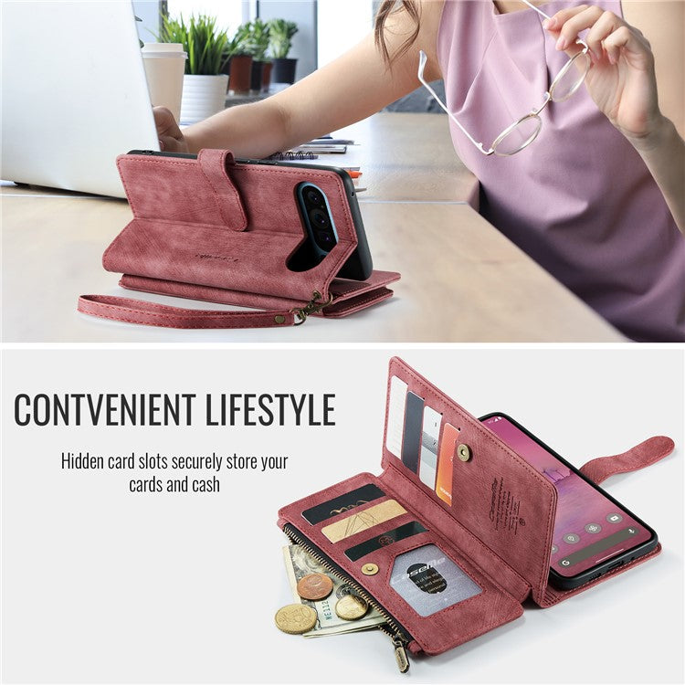 CASEME C30 Series for Google Pixel 9 Pro XL Case Leather Phone Cover with 10 Card Holder Zipper Pocket - Red