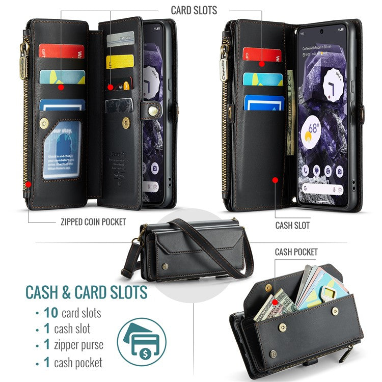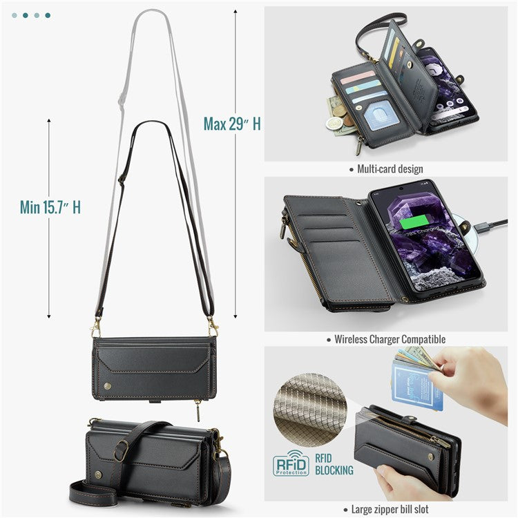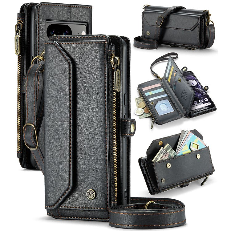 CASEME C36 Series For Google Pixel 8 Crossbody Case PU Leather Phone Cover Wallet RFID Blocking Protection - Black