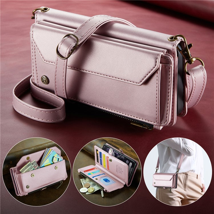CASEME C36 Series For Google Pixel 8 Crossbody Case PU Leather Phone Cover Wallet RFID Blocking Protection - Pink