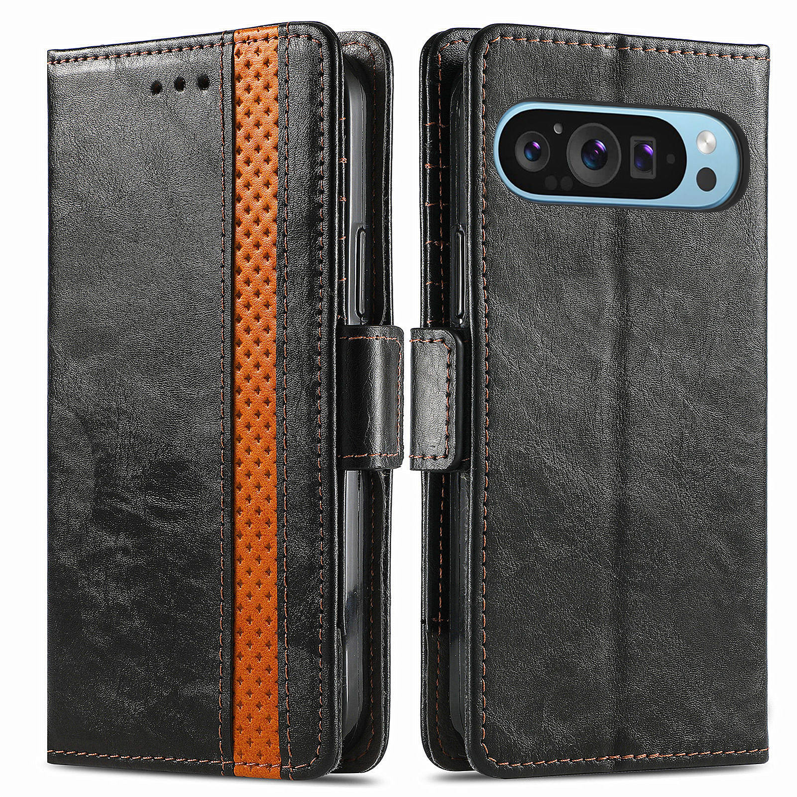 CASENEO 002 Series For Google Pixel 9 Pro Case Splicing Leather Wallet Phone Cover - Black