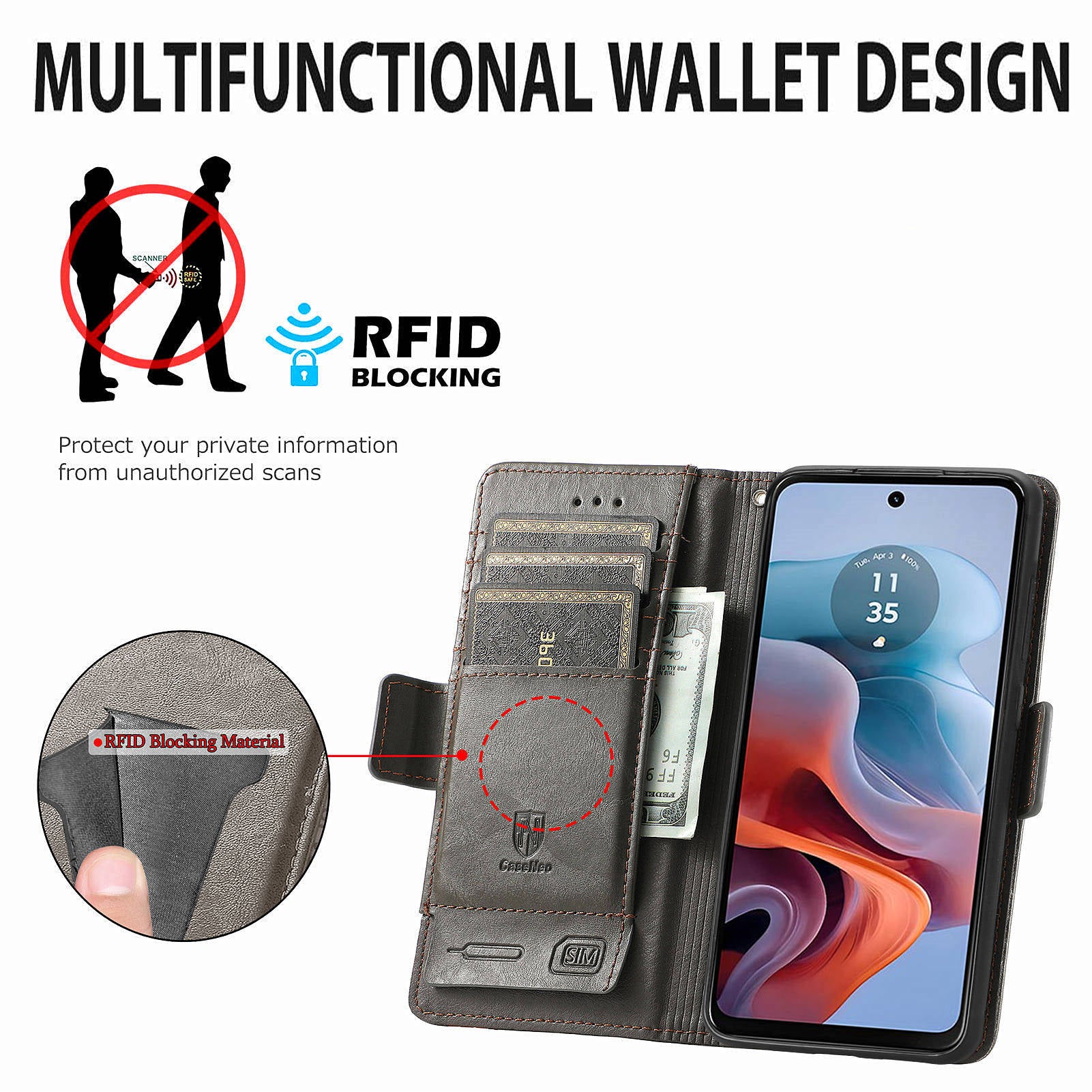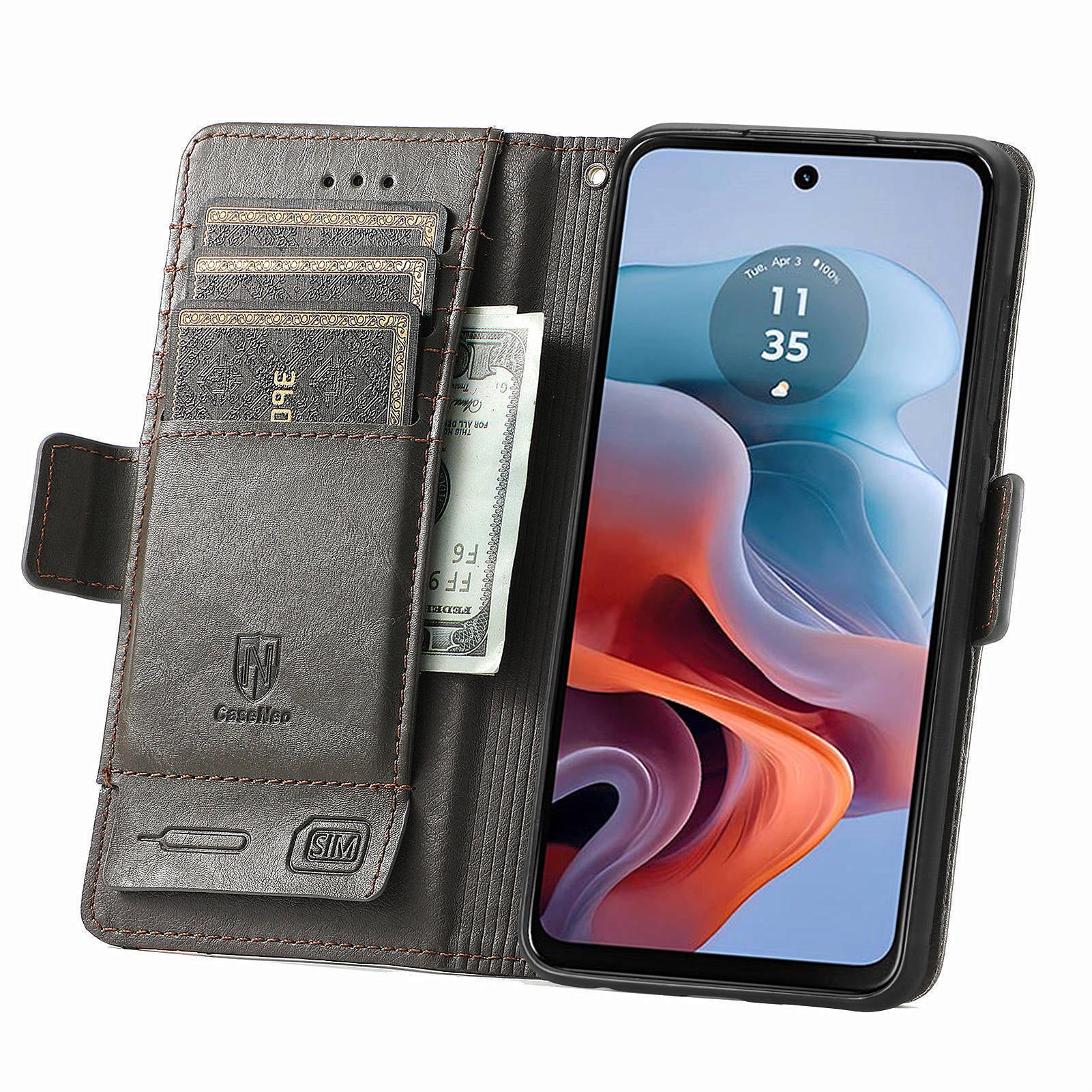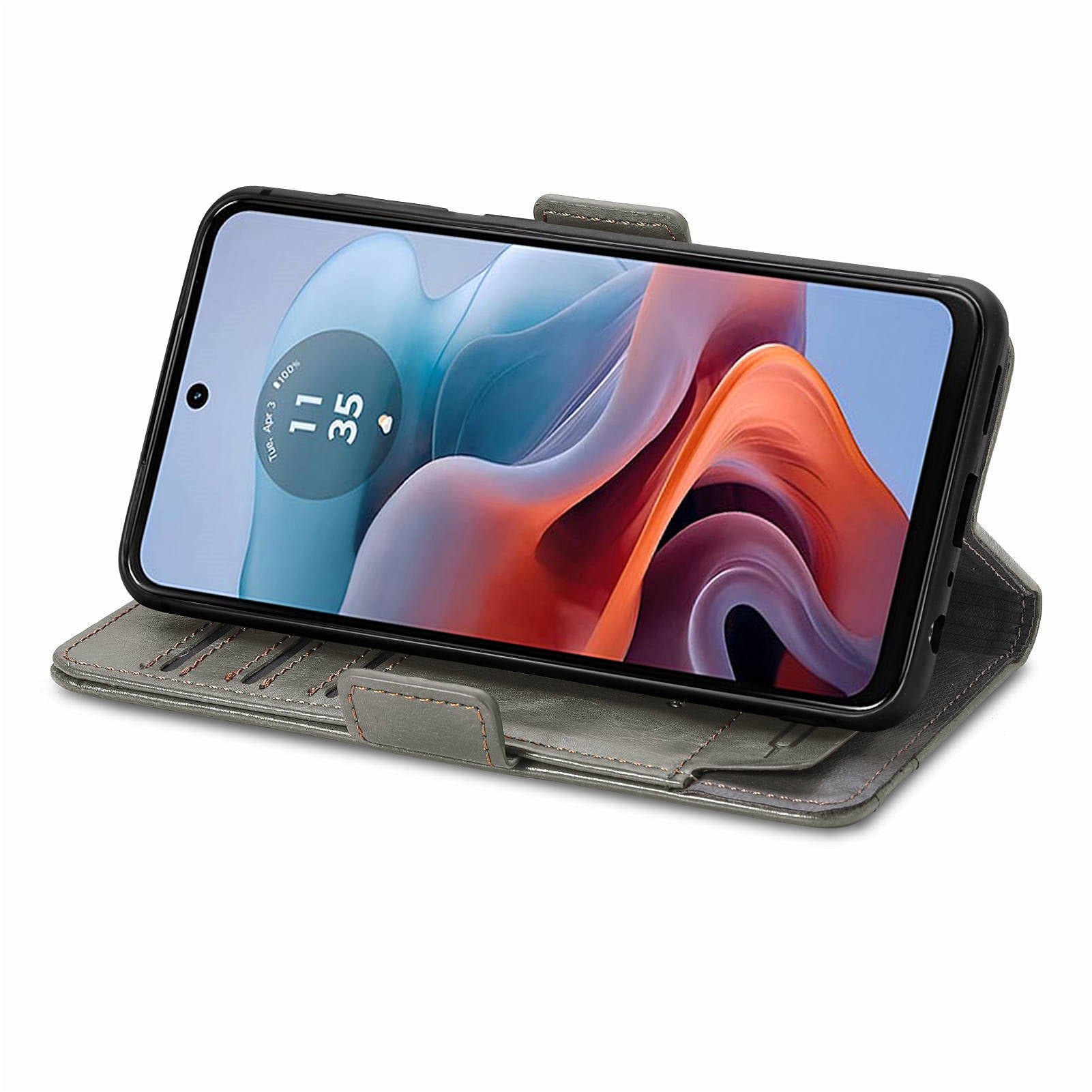 CASENEO 002 Series For Motorola Moto G34 5G Phone Cases Wholesale Splicing Leather Wallet Cover - Grey