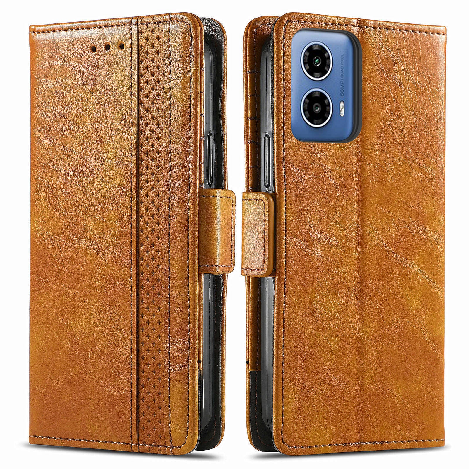 CASENEO 002 Series For Motorola Moto G34 5G Phone Cases Wholesale Splicing Leather Wallet Cover - Light Brown