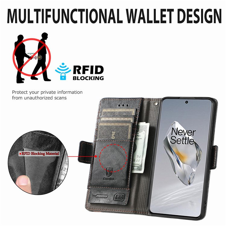 CASENEO 002 Series For OnePlus 12 5G Case Stand Flip PU Leather RFID Blocking Phone Cover - Black