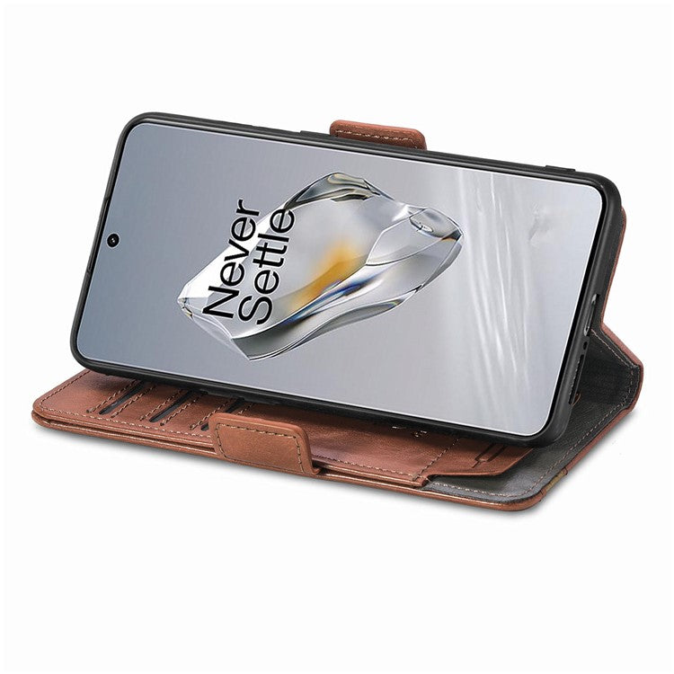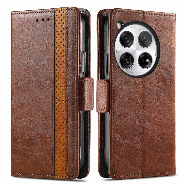 CASENEO 002 Series For OnePlus 12 5G Case Stand Flip PU Leather RFID Blocking Phone Cover - Dark Brown