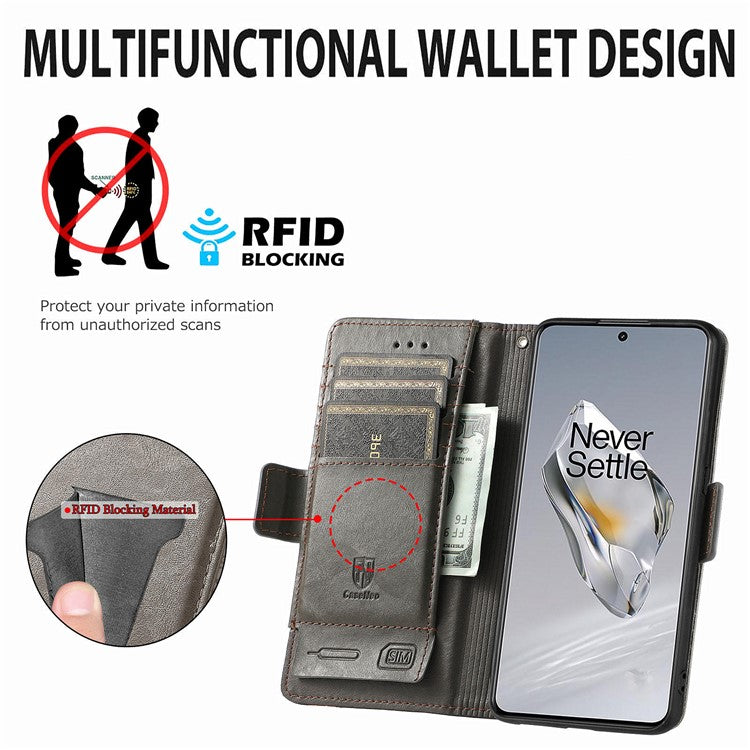 CASENEO 002 Series For OnePlus 12 5G Case Stand Flip PU Leather RFID Blocking Phone Cover - Grey
