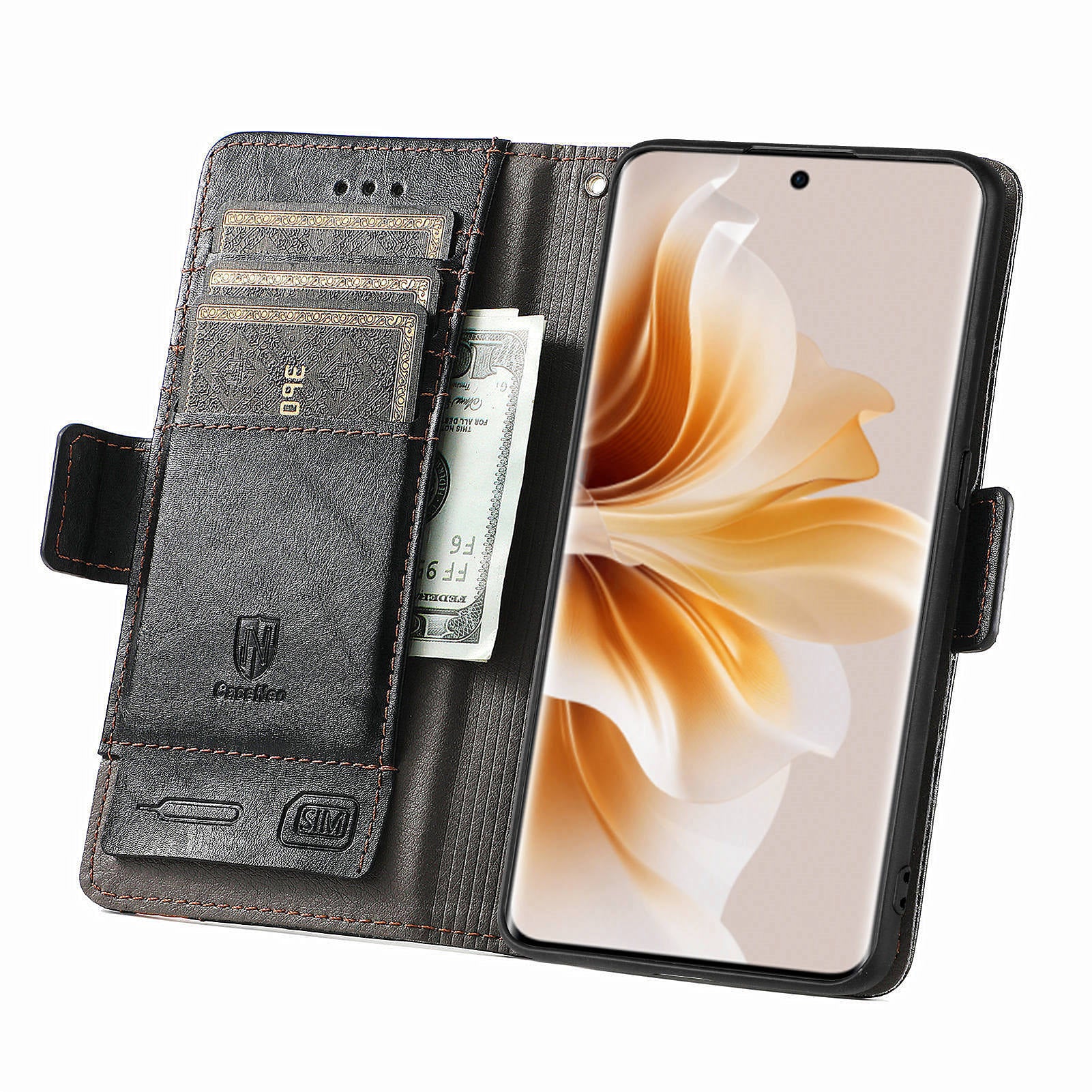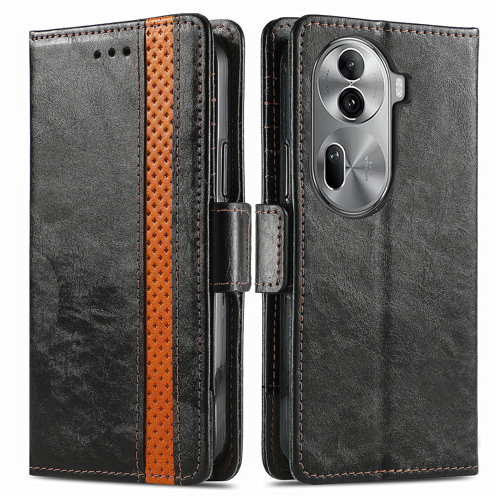 CASENEO 002 Series For Oppo Reno11 Pro 5G (Global) Leather Case Wallet Design Splicing Smart Phone Cover - Black