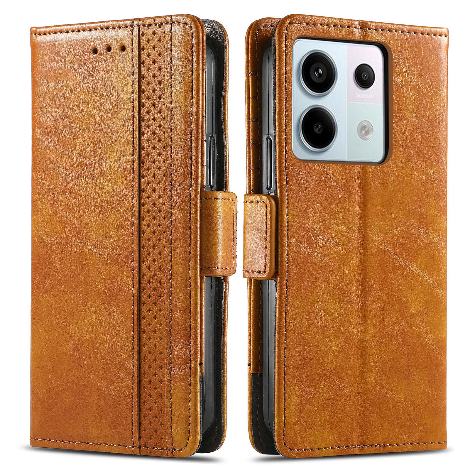 CASENEO 002 Series For Xiaomi Redmi Note 13 Pro 5G / Poco X6 5G / Poco M6 Pro 4G Leather Phone Case RFID Blocking Wallet - Light Brown