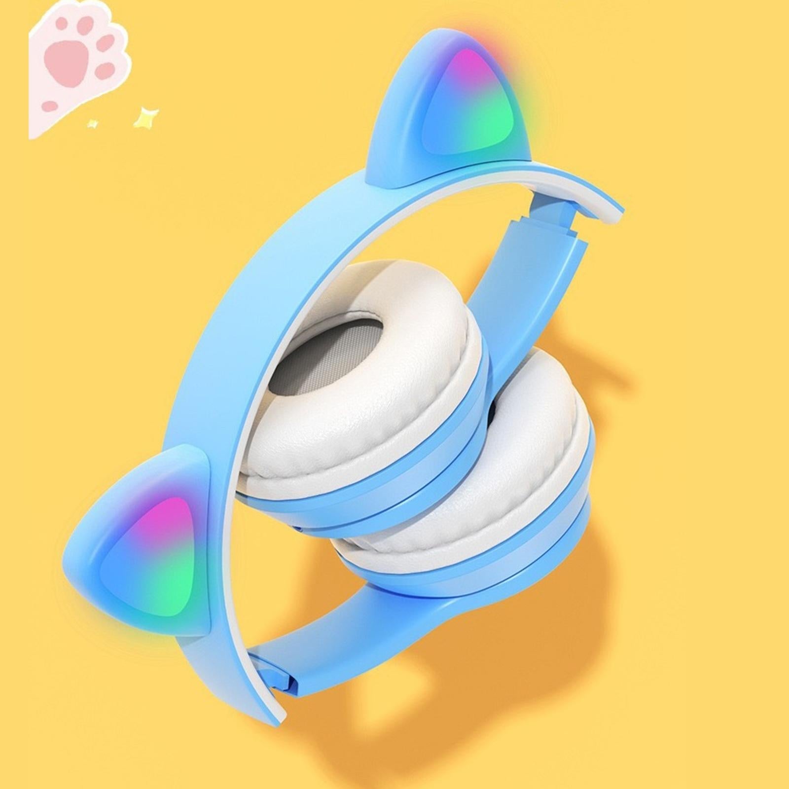 Cat Ear Wireless Headset LED Light Surround Sound for Laptop black