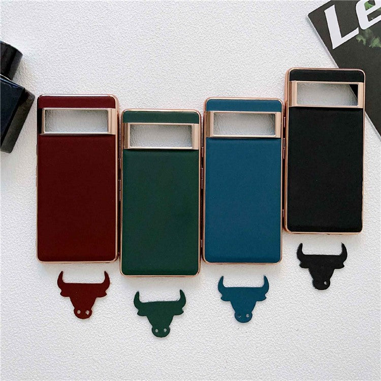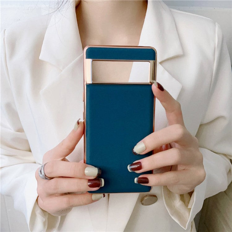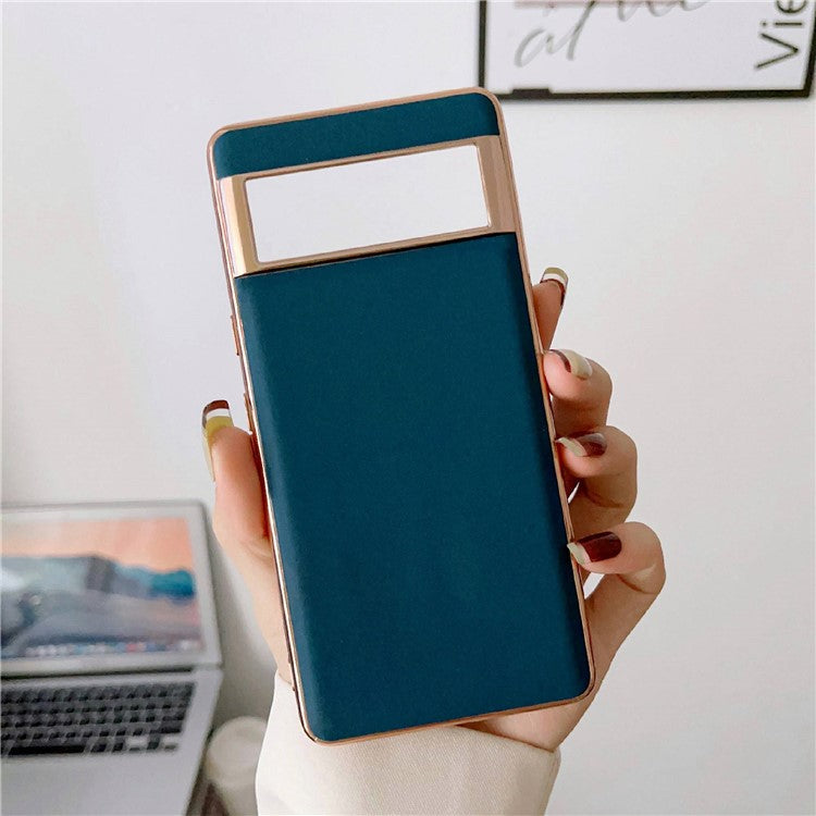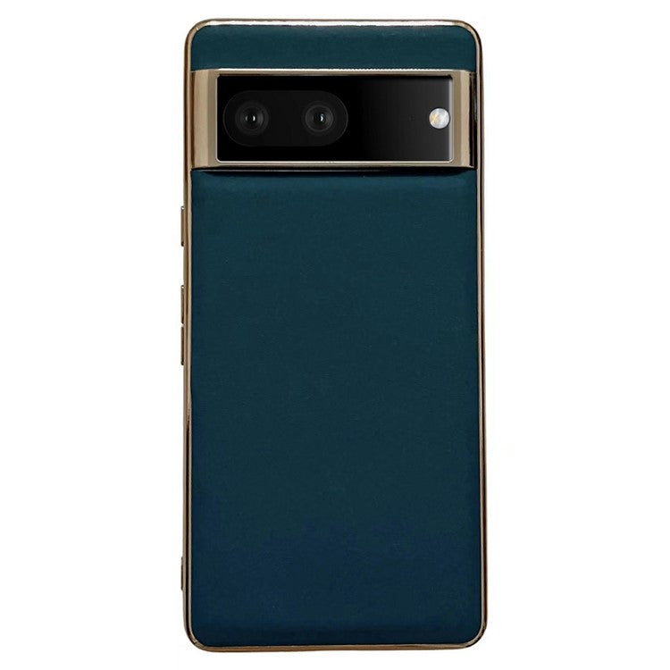 Cell Phone Back Cover for Google Pixel 7 5G, Drop Protection Nano Electroplating Genuine Leather Coated TPU Phone Case - Blue