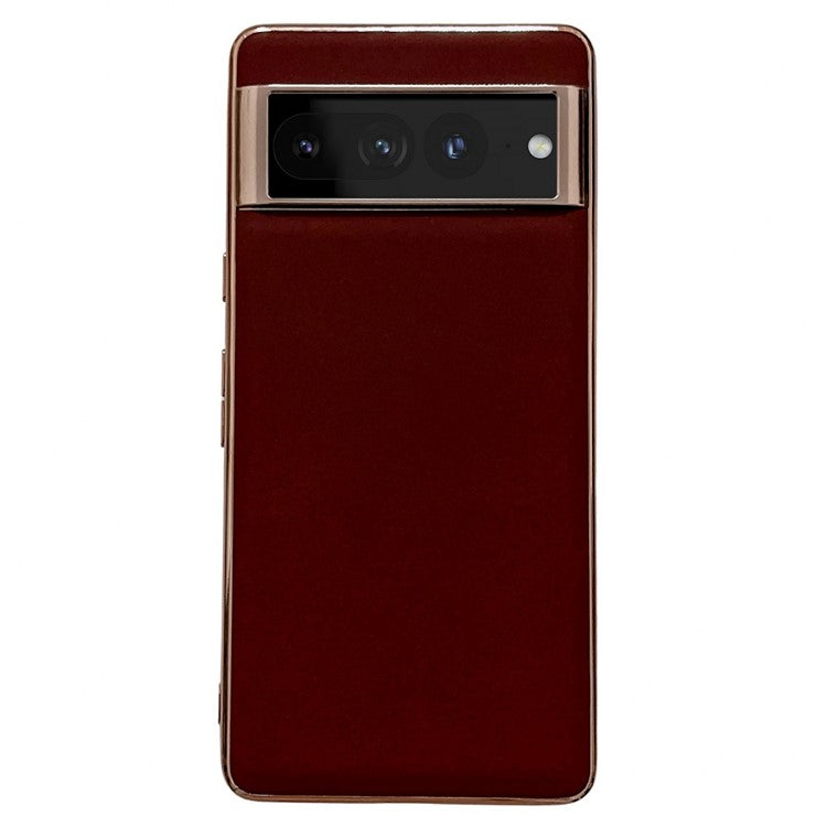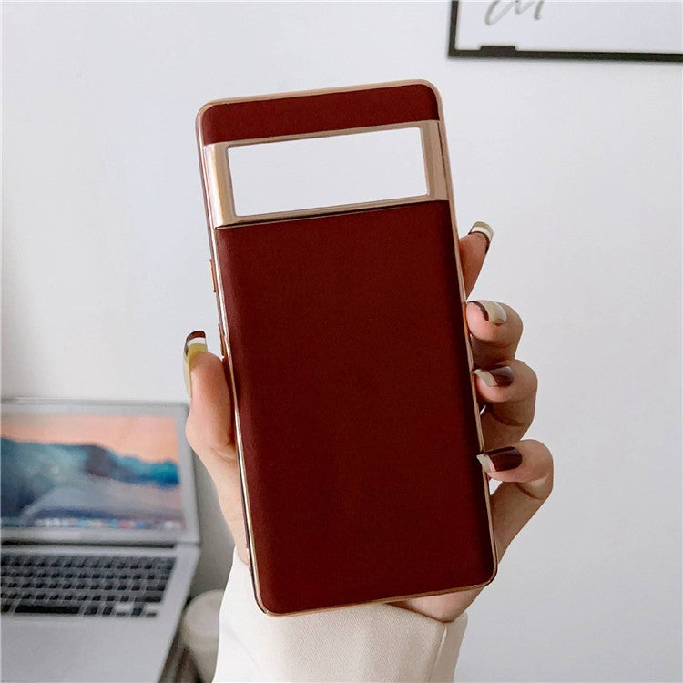 Cell Phone Back Cover for Google Pixel 7 Pro 5G, Nano Electroplating Genuine Leather Coated TPU Phone Case - Coffee