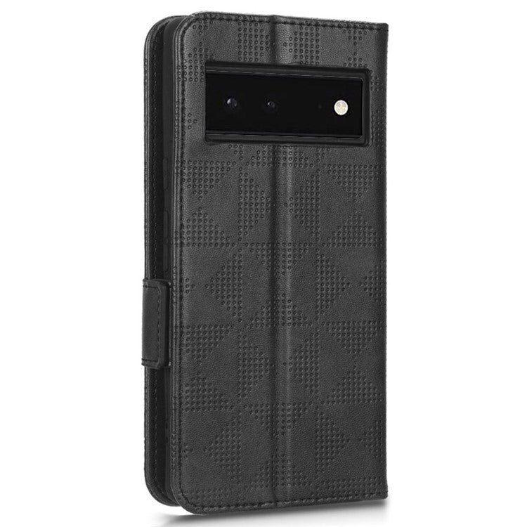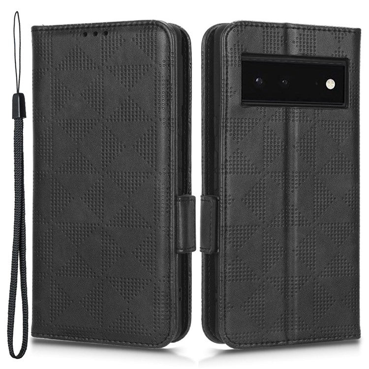 Cell Phone Case for Google Pixel 6, Imprinted Triangle Stand Anti-scratch Wallet PU Leather Cover with Strap - Black