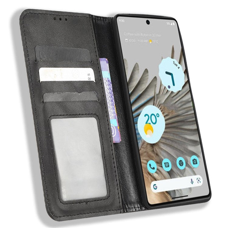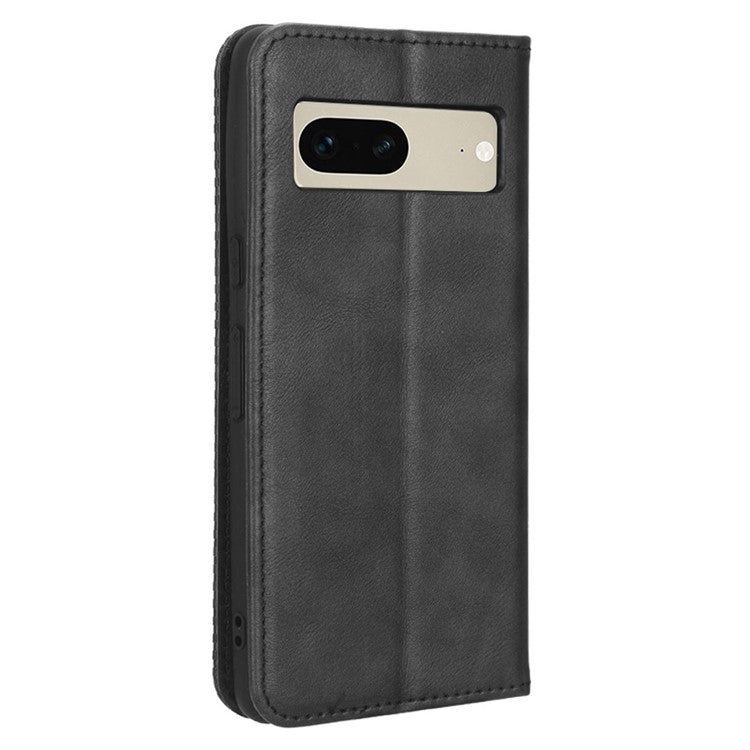 Cell Phone Cover For Google Pixel 7 5G, Wallet Case Magnetic Auto Closing PU Leather Retro Imprint Pattern Anti-Srcratch Phone Shell with Stand - Black