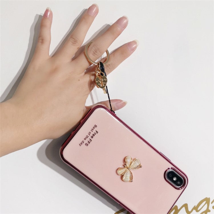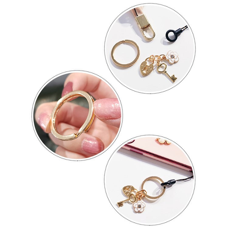 Chiffon Silk Scarf Style Phone Lanyard Dot Design Metal Heart-Shape Pendant Neck Strap - Black