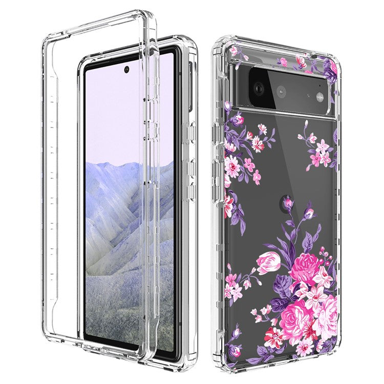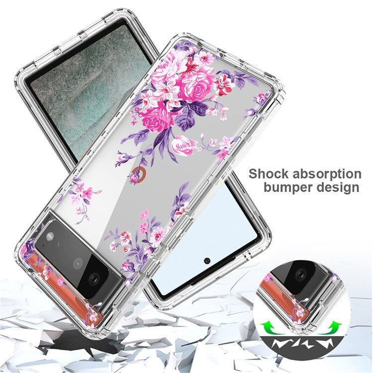 Clear Phone Case for Google Pixel 6 Pro 5G, Pattern Printing Anti-fall Hybrid PC + TPU Protective Cover - Flower