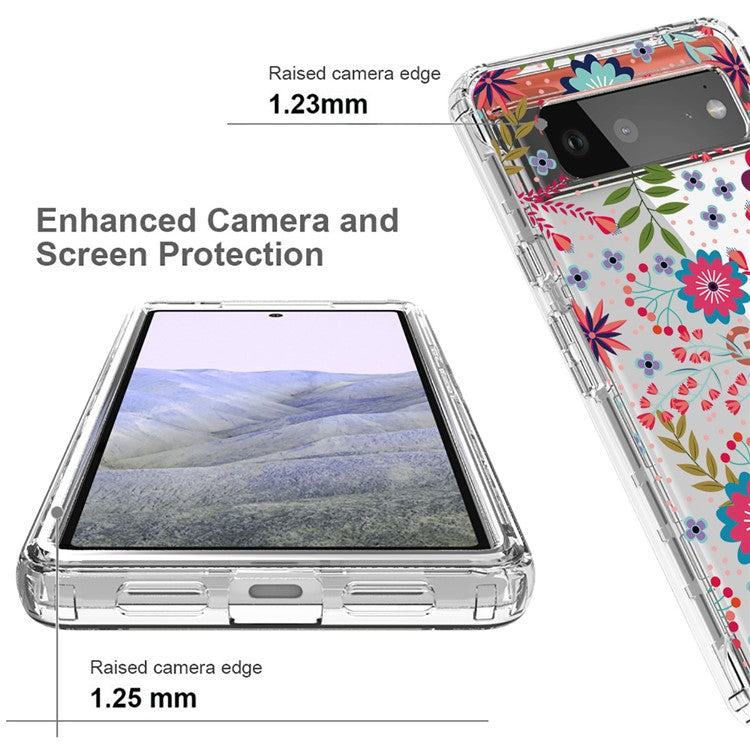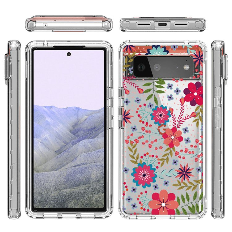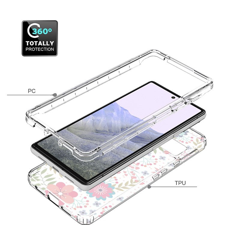 Clear Phone Case for Google Pixel 6 Pro 5G, Pattern Printing Anti-fall Hybrid PC + TPU Protective Cover - Flower and Leaf