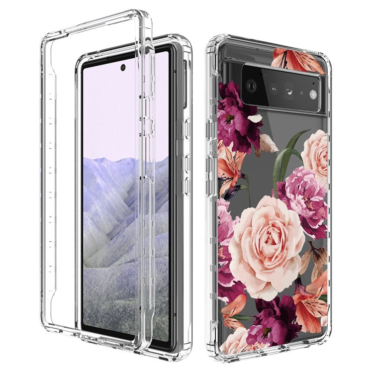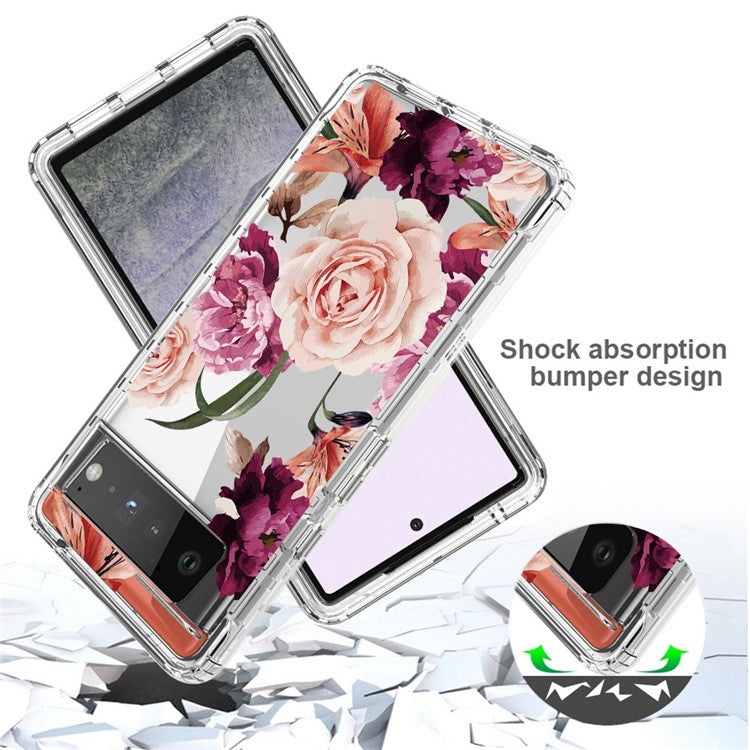Clear Phone Case for Google Pixel 6 Pro 5G, Pattern Printing Anti-fall Hybrid PC + TPU Protective Cover - Purple Flower