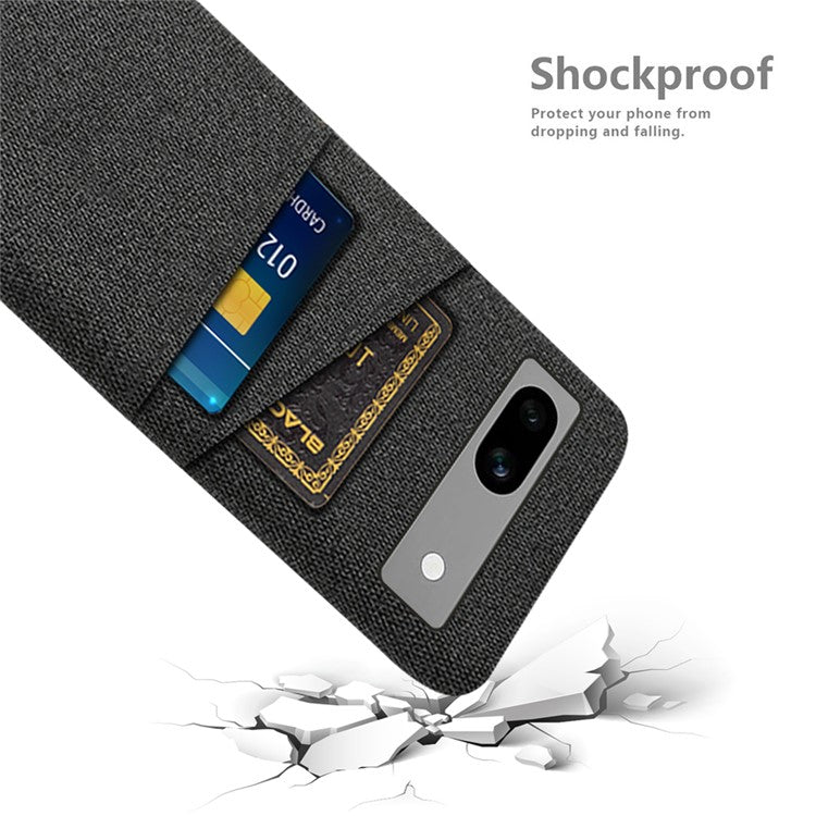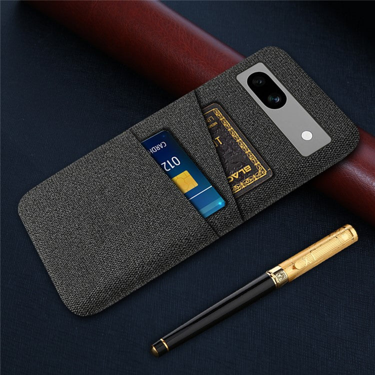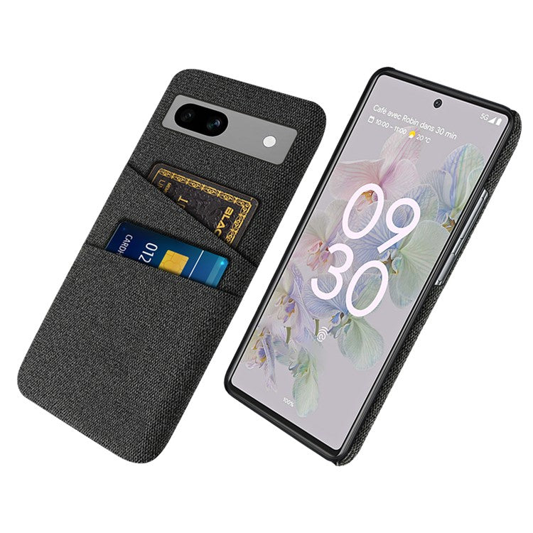 Cloth Texture Phone Back Cover For Google Pixel 7a, Anti-fall Slim Protective Phone Case Card Holder - Black