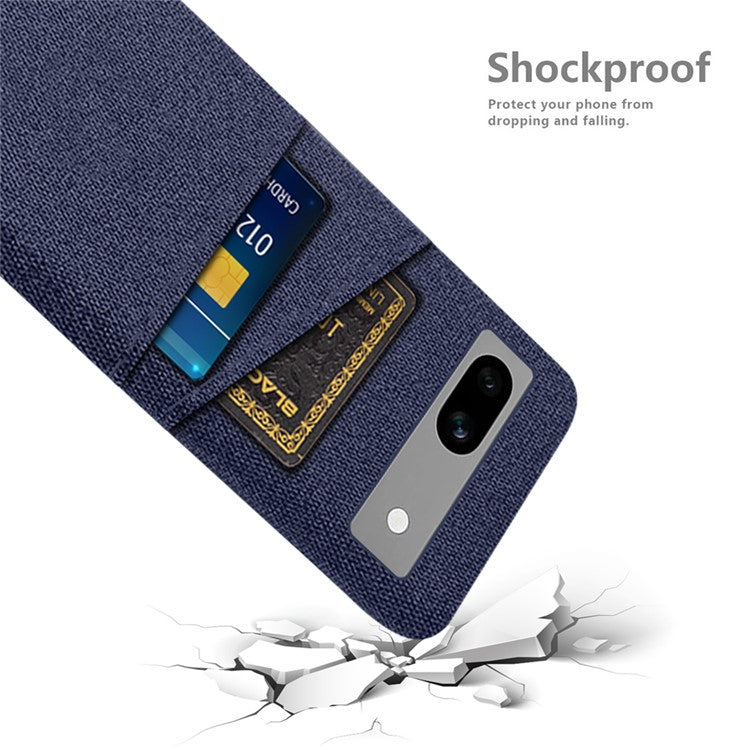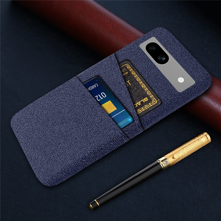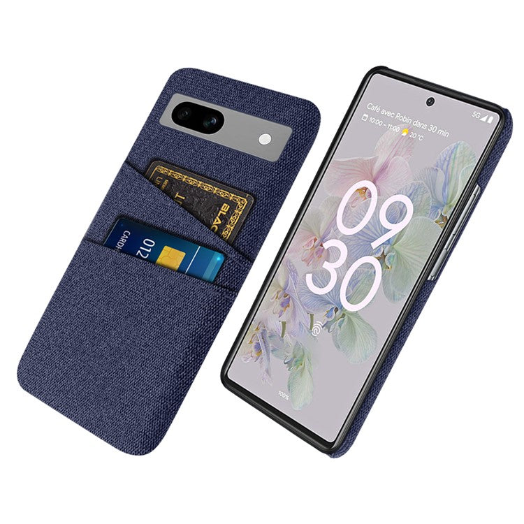 Cloth Texture Phone Back Cover For Google Pixel 7a, Anti-fall Slim Protective Phone Case Card Holder - Blue
