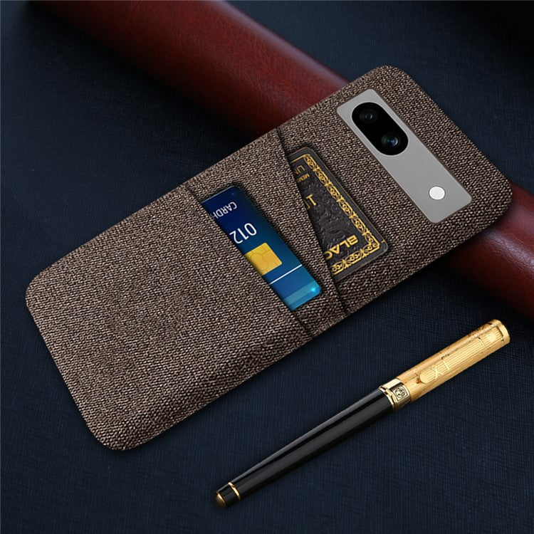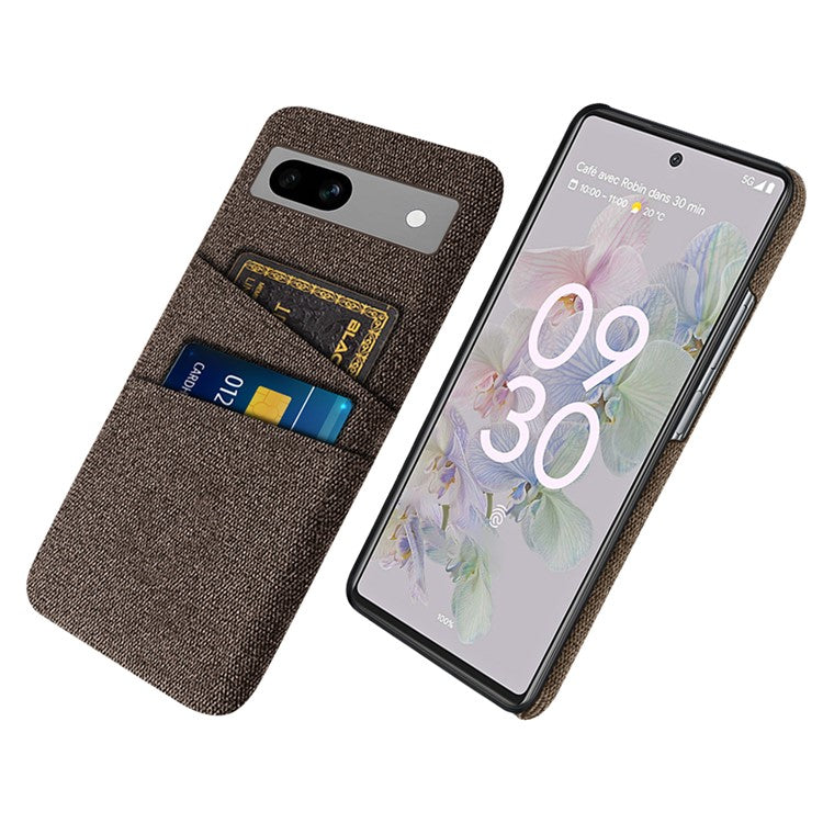 Cloth Texture Phone Back Cover For Google Pixel 7a, Anti-fall Slim Protective Phone Case Card Holder - Brown