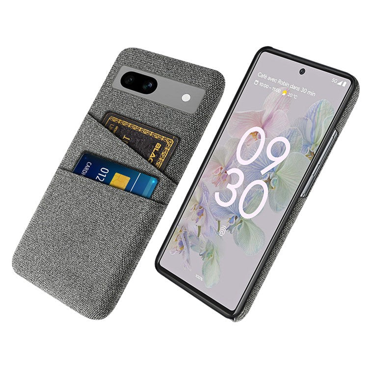 Cloth Texture Phone Back Cover For Google Pixel 7a, Anti-fall Slim Protective Phone Case Card Holder - Grey