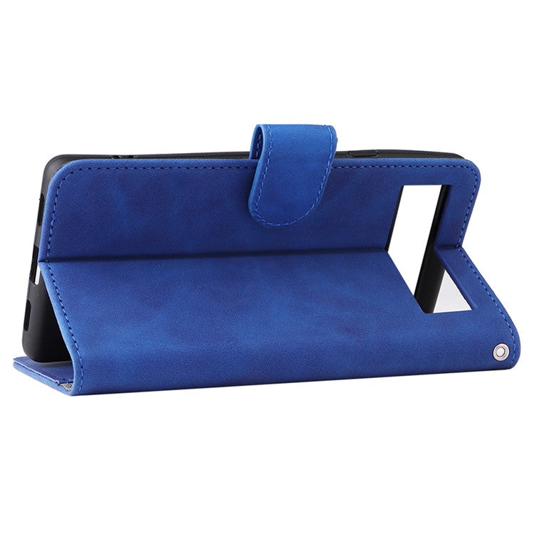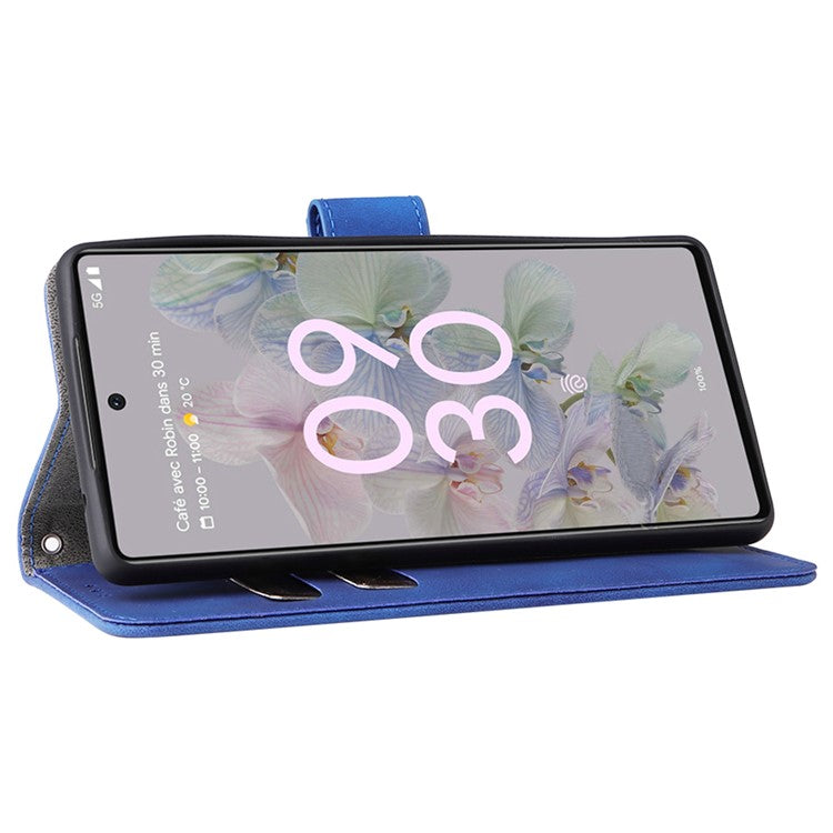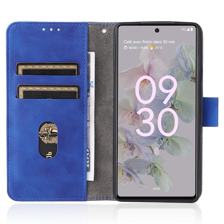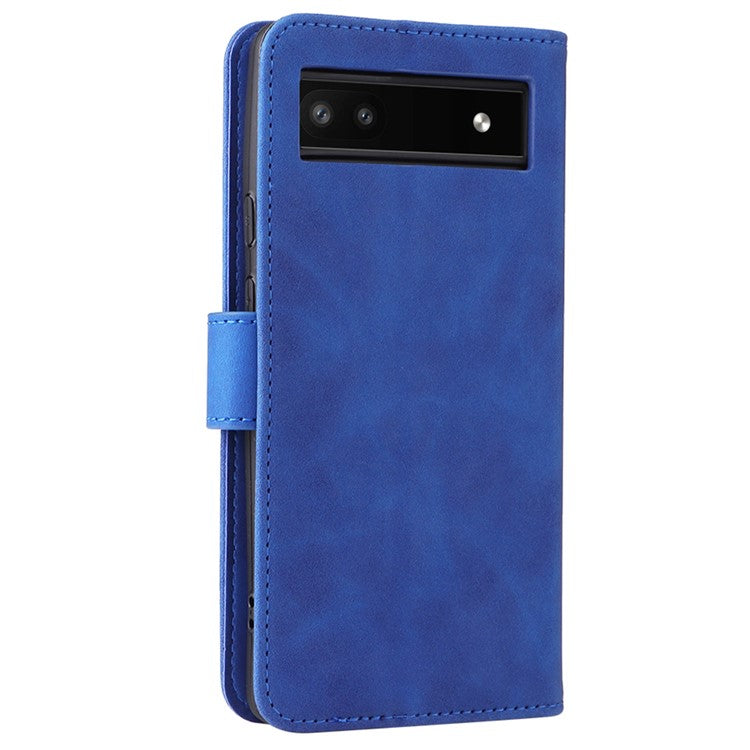 Comfortable Skin-touch Feeling Anti-scratch PU Leather Stand Phone Cover Wallet Case for Google Pixel 6a - Blue