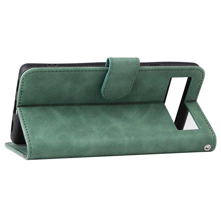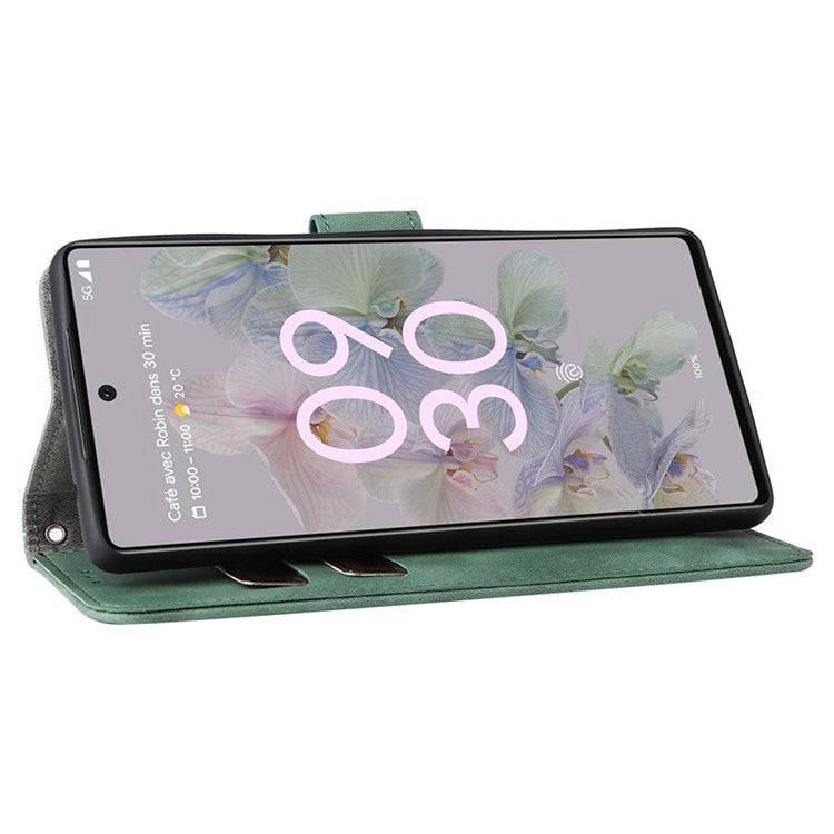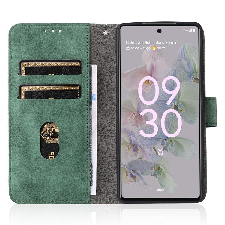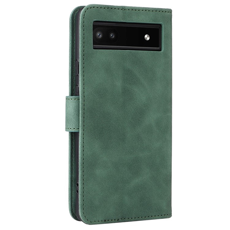 Comfortable Skin-touch Feeling Anti-scratch PU Leather Stand Phone Cover Wallet Case for Google Pixel 6a - Green