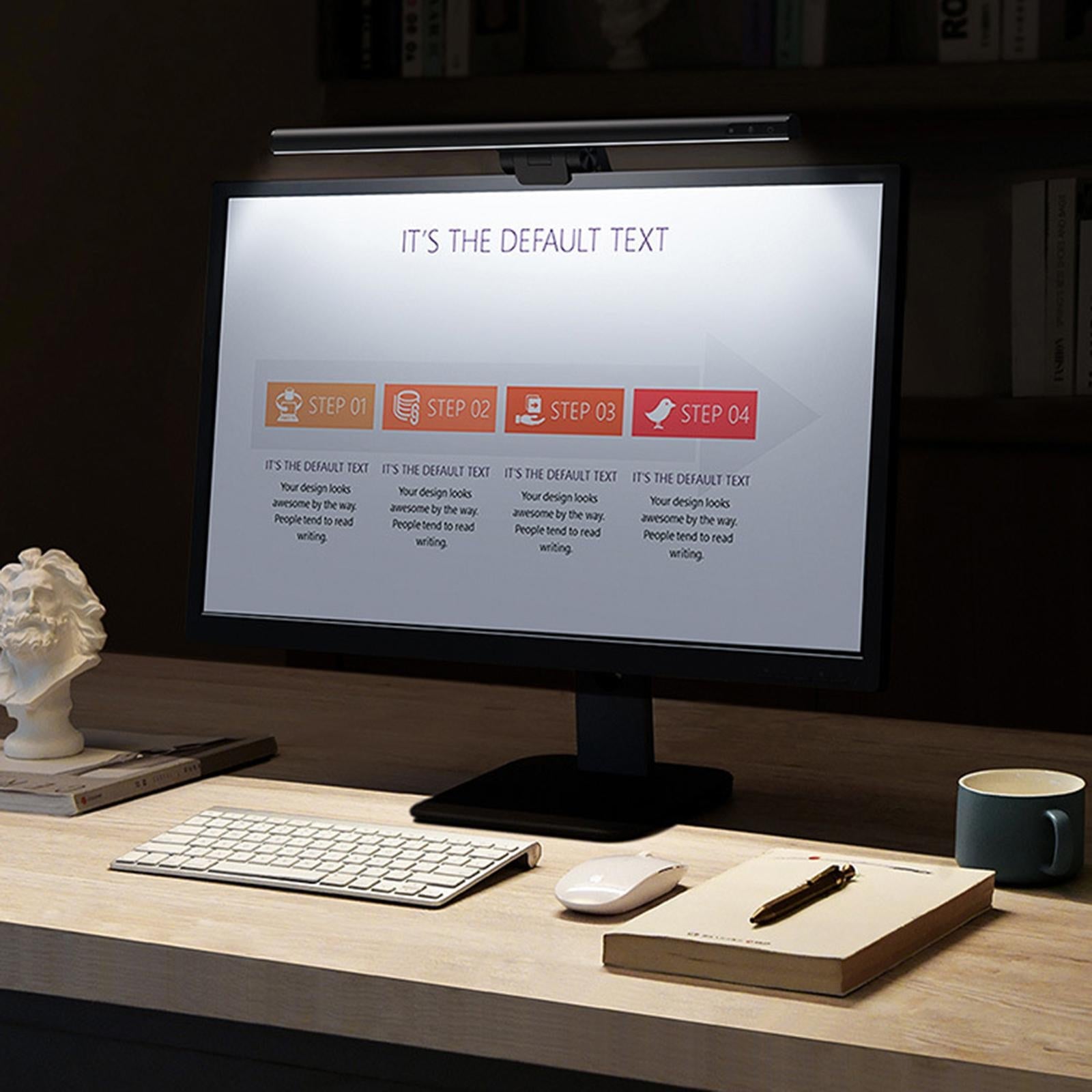No Screen Glare & Flicker-Free Anti-Blue-Light: The computer monitor light bar has a unique asymmetrical optical design that illuminates only your desk and keyboard while ensuring no reflected glare on the screen.