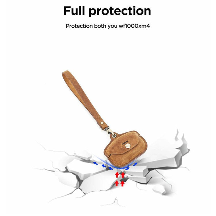 CONTACTS FAMILY Genuine Leather Case for Sony WF-1000XM4 Wireless Headphones - Brown