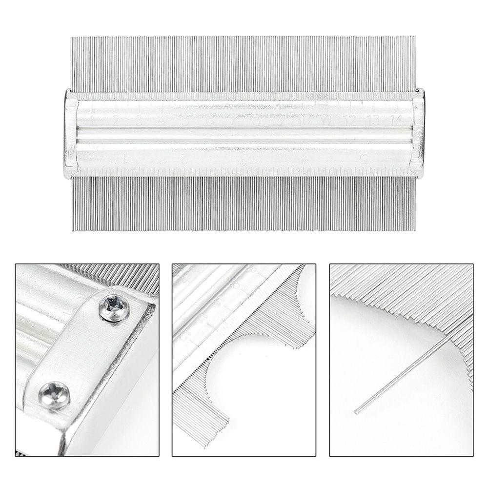 This profile gauge is a practical tool for most kinds of carpentry wood working and contour matching jobs.Features:Helps to easily copy any shapes of tile laminate engineered wood solid wood and vinyl flooring making their profile match with objects well and save much time in finishing work.Not easy to get rust or broken practical and sturdy for long time using.Can be applied to copy or track the shape of irregular objects with ruler on the top you can quickly figure out the size of them instant template for marking precise tile cut.Suitable for people to use to track and measure profiles or edges of objects like winding pipes circular frames and other irregular objects handy for moulding woodworking operations on car bodies and any other contour duplication works.Specifications:Material: stainless steelMeasuring range: 0~150 mm/ 0~5.9inchesItem size: 154 * 85 * 18mm / 6.06 * 3.35 * 0.71inPackage size: 155 * 87 * 20mm / 6.1 * 3.42 * 0.79inPackage weight: 178g / 6.28ouncesNote:1.Due to the different display screen and light effect the actual color of the item might be slightly different from the color showed on the pictures.2.Please allow 10-20mm measuring deviation due to manual measurement.Package List:1 * Contour Gauge