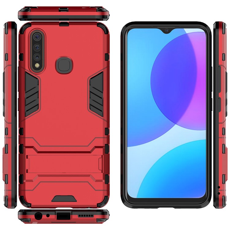 Cool Guard PC + TPU Combo Cover with Kickstand for vivo U3 / Y19 - Red