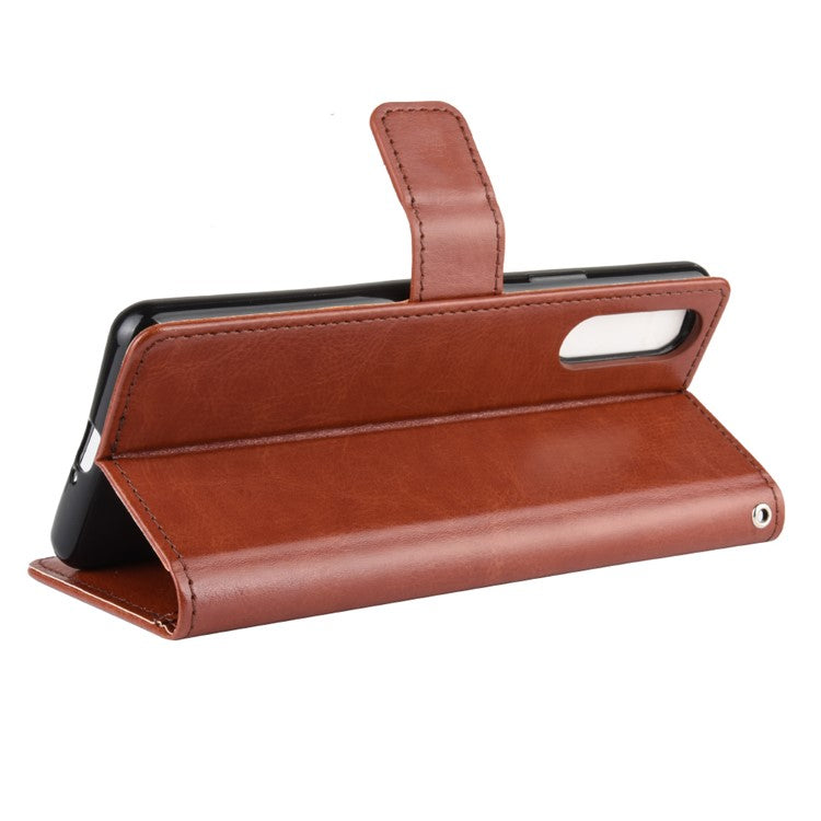Crazy Horse Flip Leather Protective Cover with Wallet for Sony Xperia 10 II - Brown