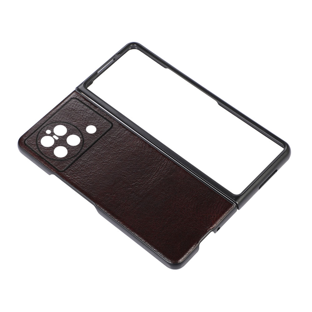 Crazy Horse Texture Genuine Leather Phone Back Case for vivo X Fold, Anti-Drop Cowhide Leather Coated TPU + PC Hybrid Bottom Case - Coffee