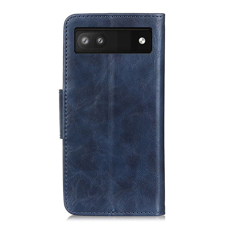 Crazy Horse Texture Split Leather + TPU Phone Cover Wallet Stand Case for Google Pixel 6a - Blue