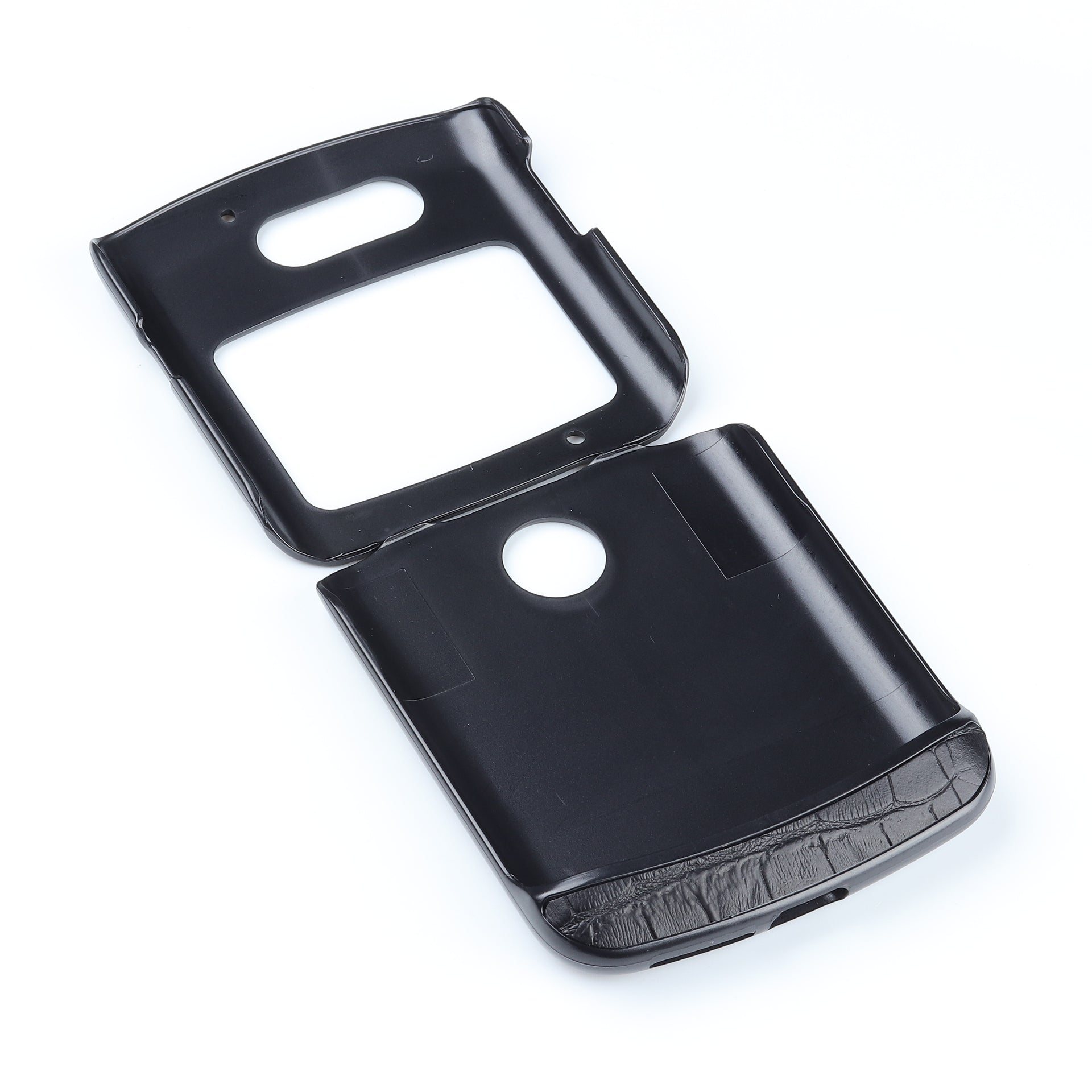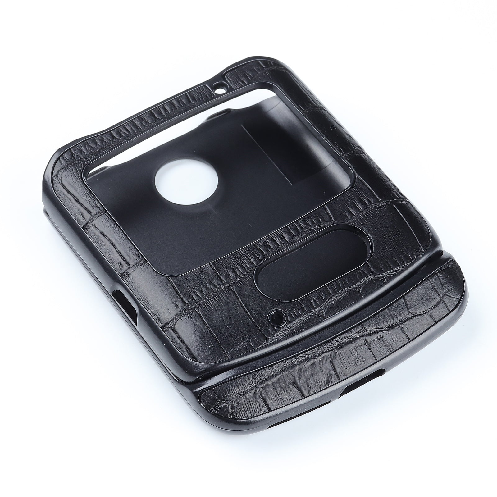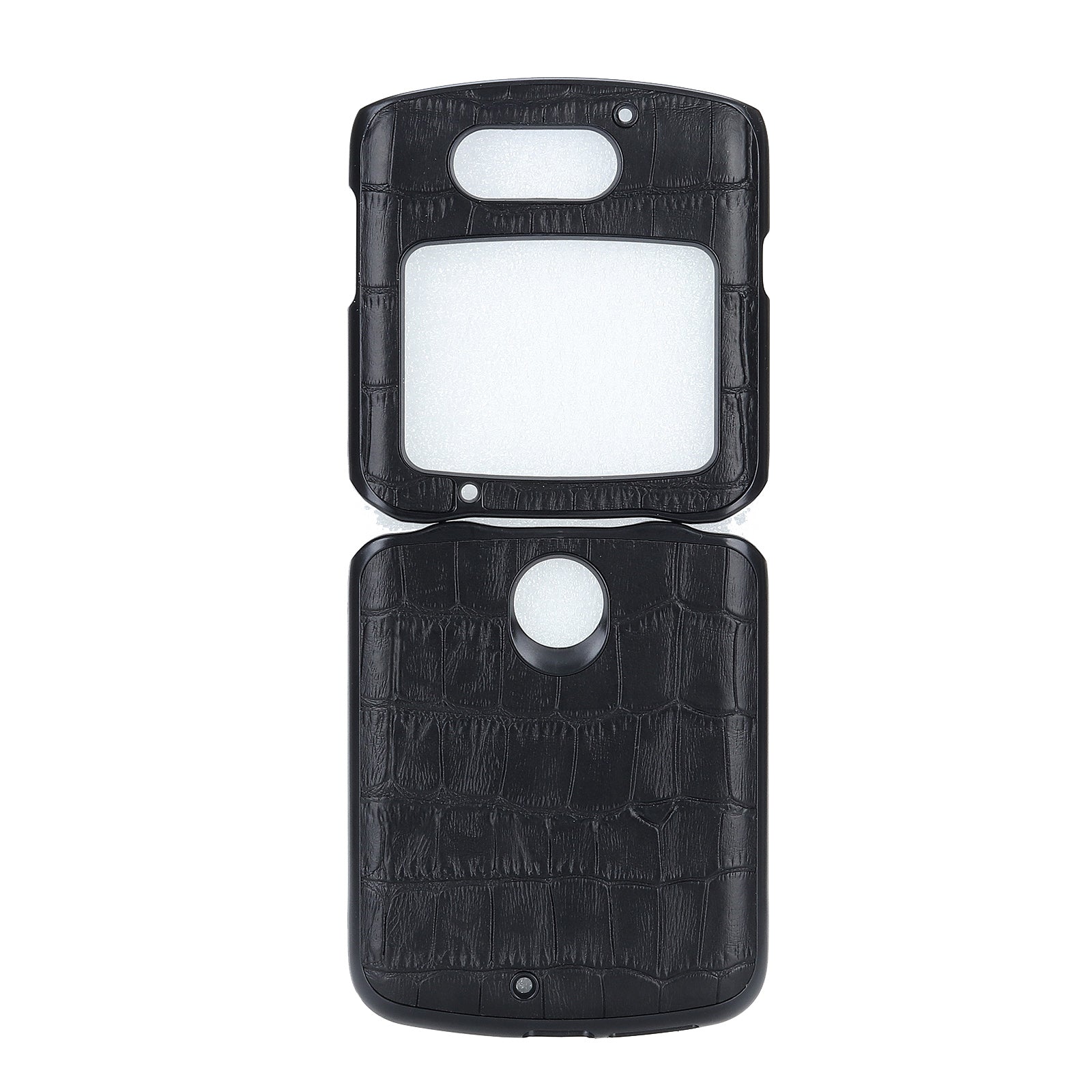 Crocodile Texture Genuine Leather Coated Plastic Phone Case for Motorola Razr 5G - Black