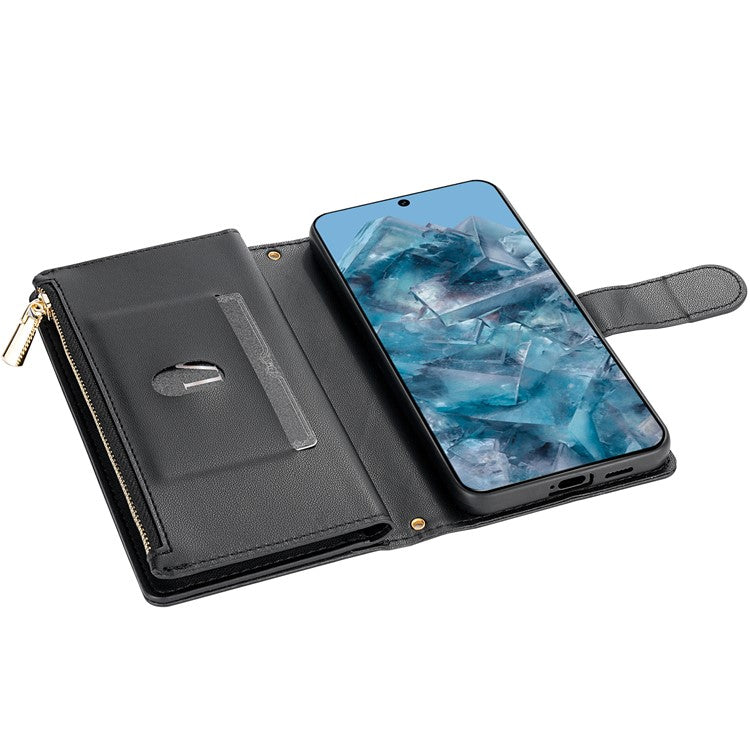 CSJ-P2 For Google Pixel 8 Pro Case Rhombus Stitching Design Leather Wallet Phone Cover with Long / Short Strap - Black