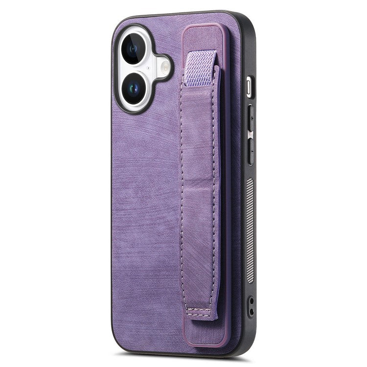D11 For iPhone 16 Case Wristband Leather + TPU Phone Cover - Purple