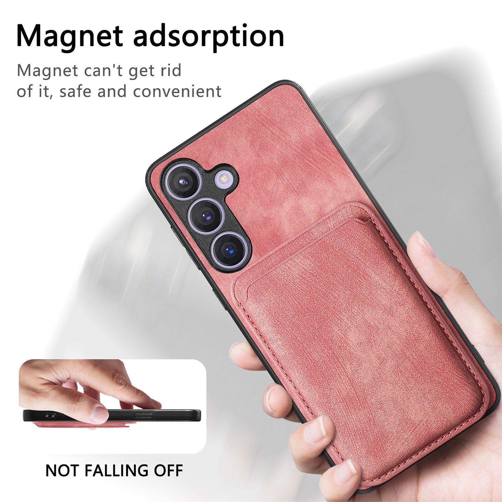 D12 For Samsung Galaxy S24 Bump Proof Phone Cover with Detachable Magnetic Card Case - Pink