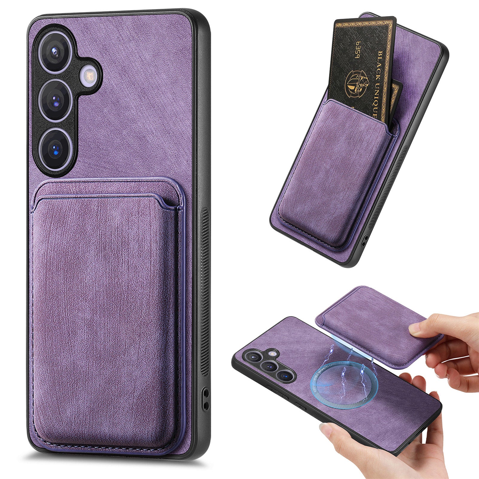D12 For Samsung Galaxy S24 Bump Proof Phone Cover with Detachable Magnetic Card Case - Purple