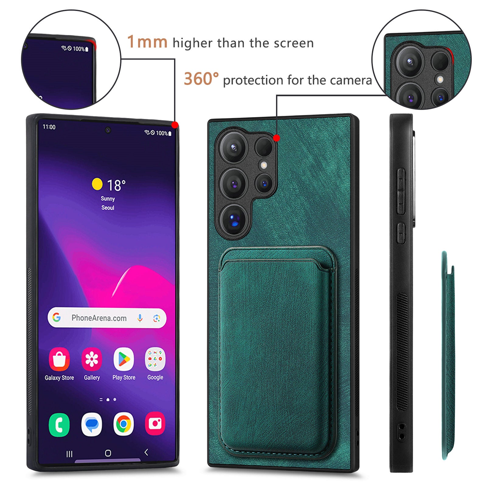 D12 For Samsung Galaxy S24 Ultra Retro Texture Detachable Magnetic Card Case Phone Cover - Green