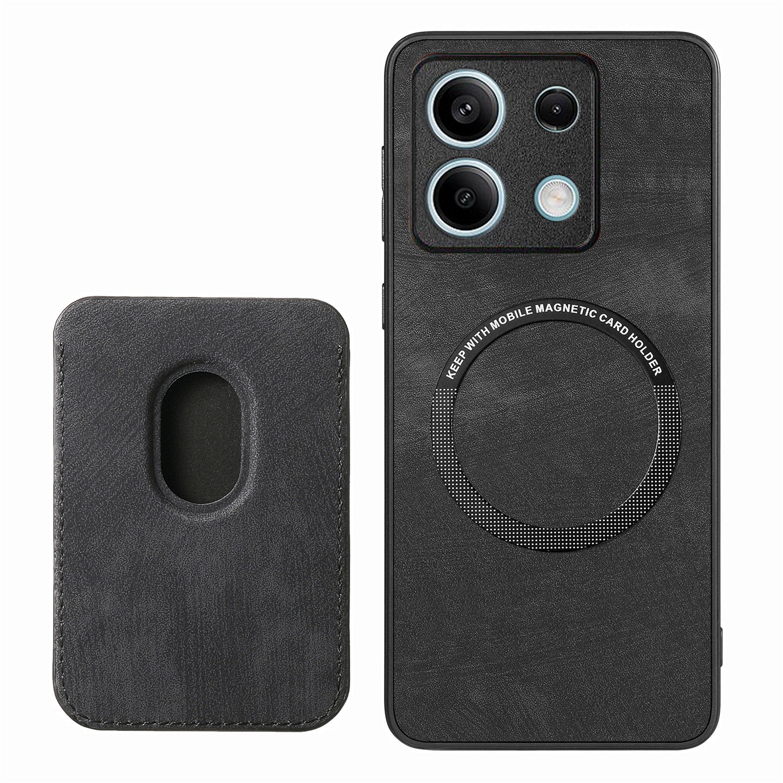 D12 For Xiaomi Redmi Note 13 5G Phone Case Magnetic Card Holder Vintage Leather Cover - Black