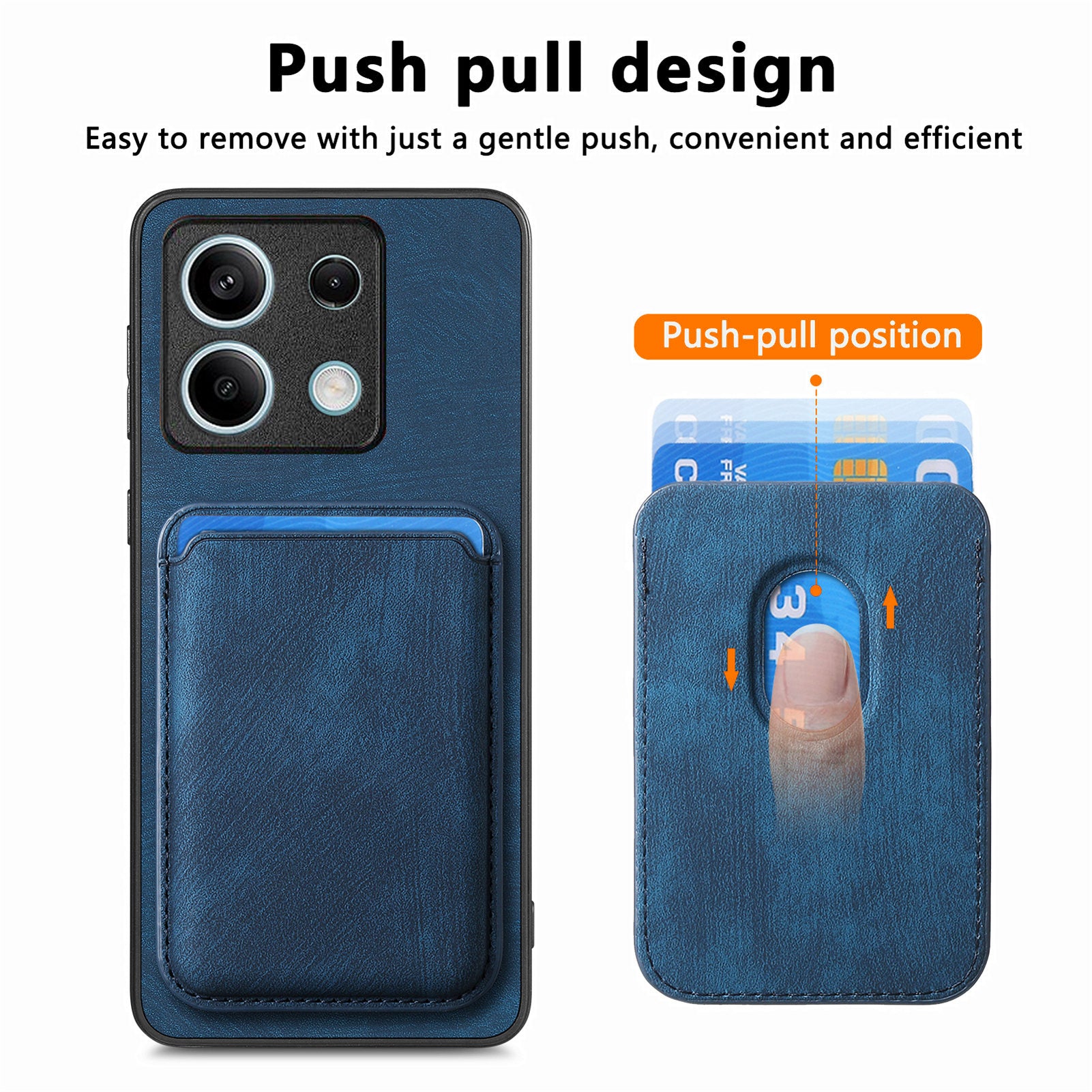 D12 For Xiaomi Redmi Note 13 5G Phone Case Magnetic Card Holder Vintage Leather Cover - Blue
