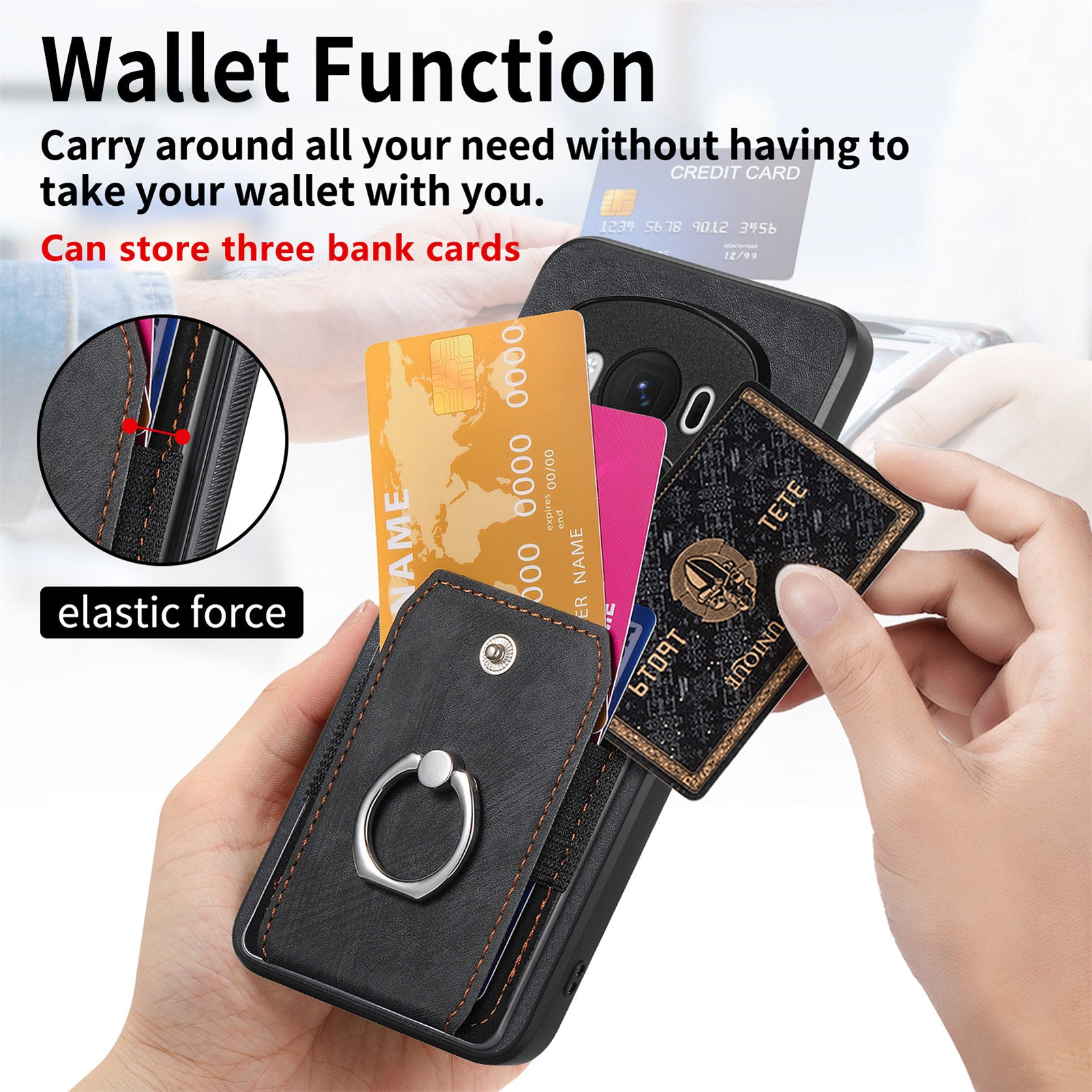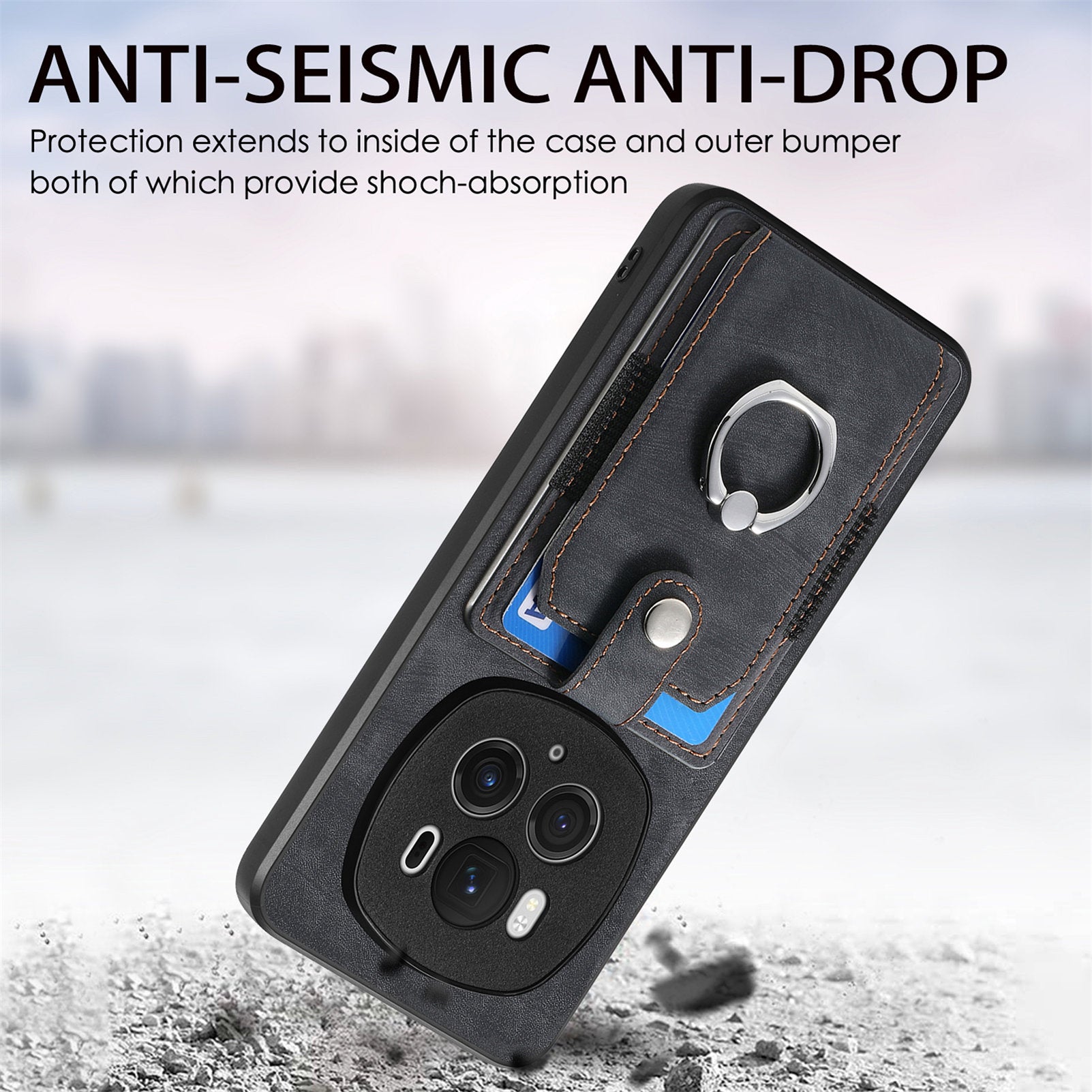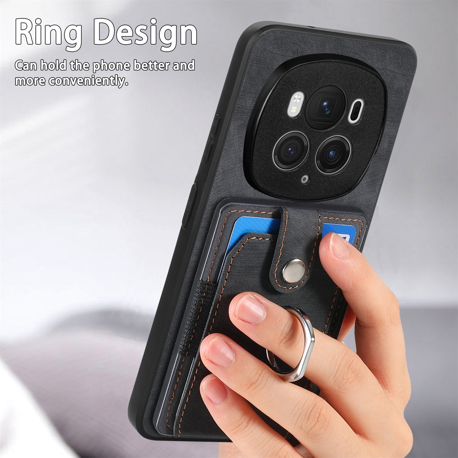 D2 for Honor Magic6 Pro 5G Case Card Slots Retro Leather Coated TPU Kickstand Cover - Black